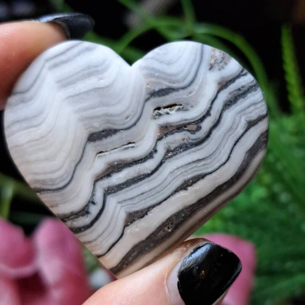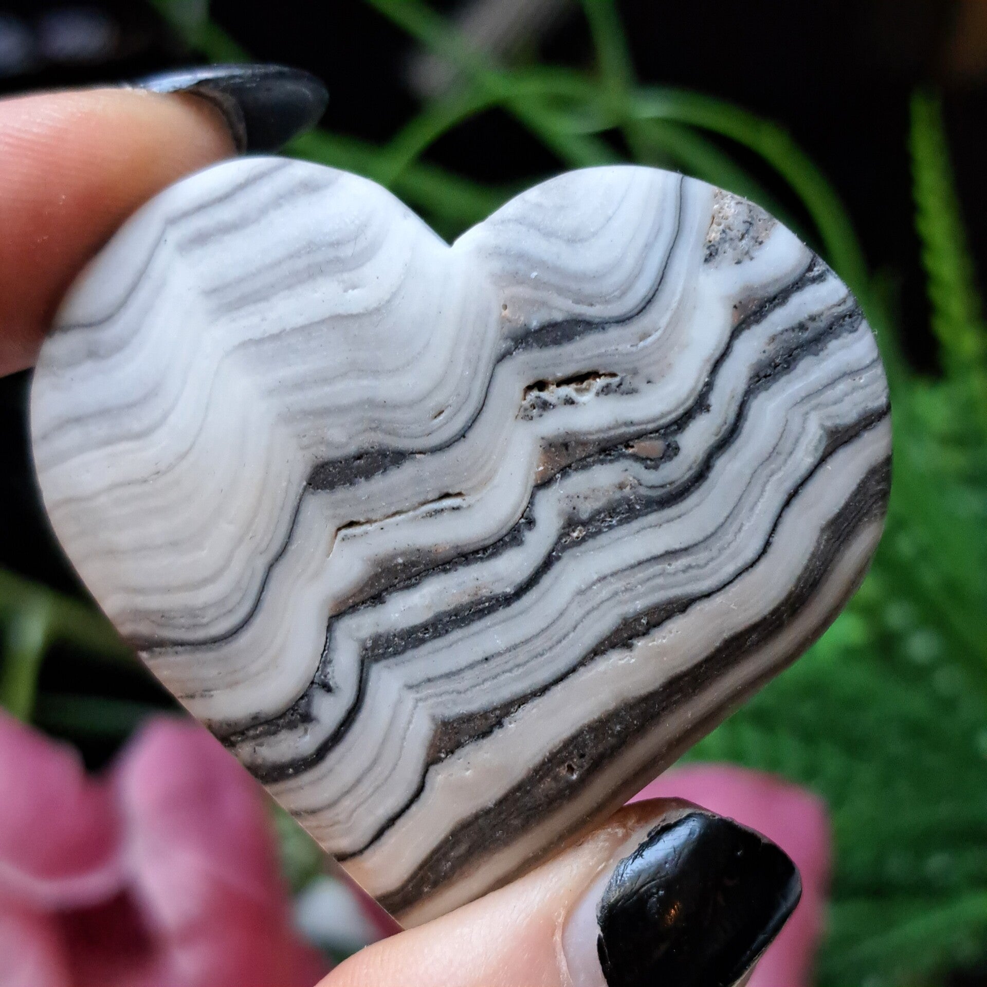 Deze gestreepte hart variant van Calciet is een Zebra Calciet en is 5,4 centimeter.