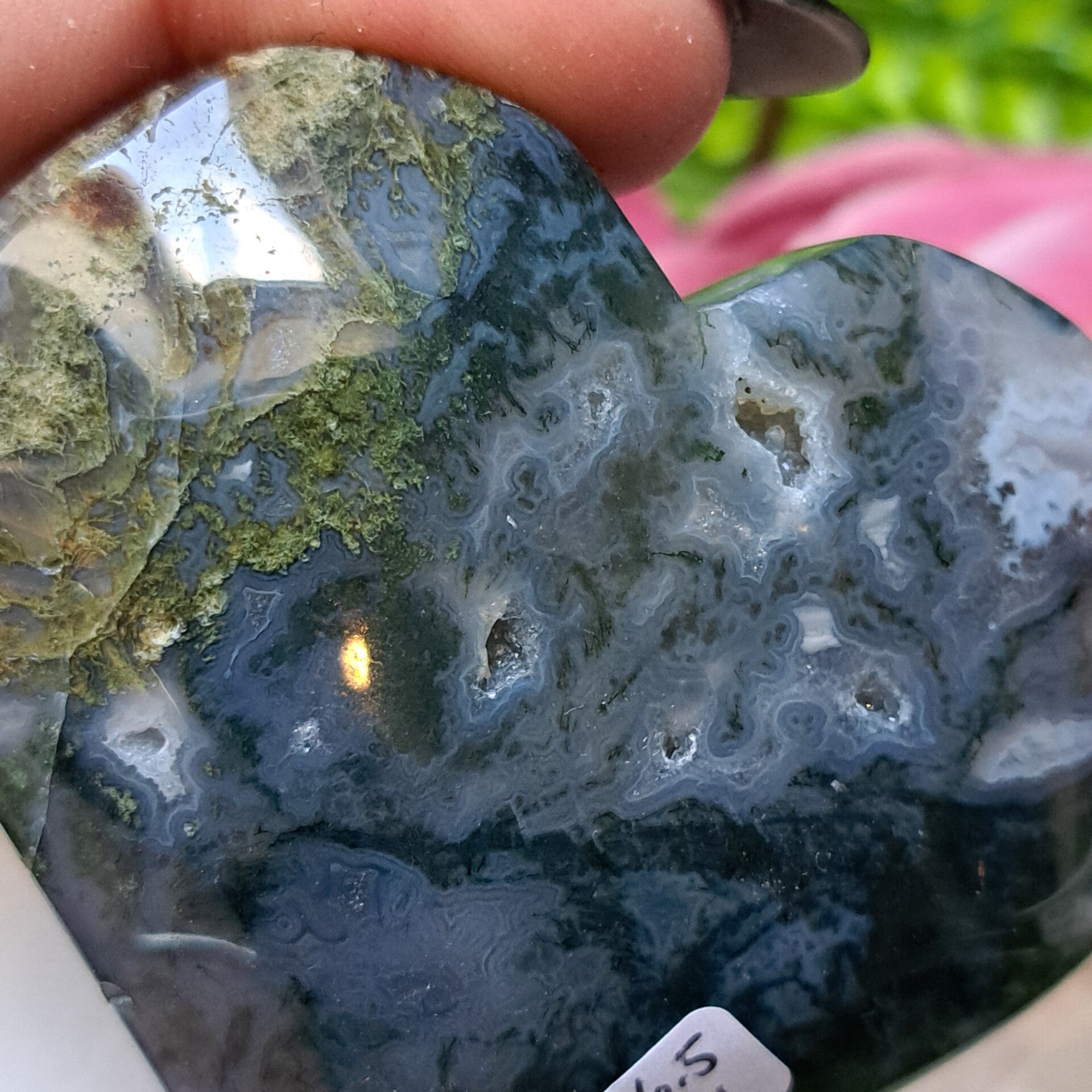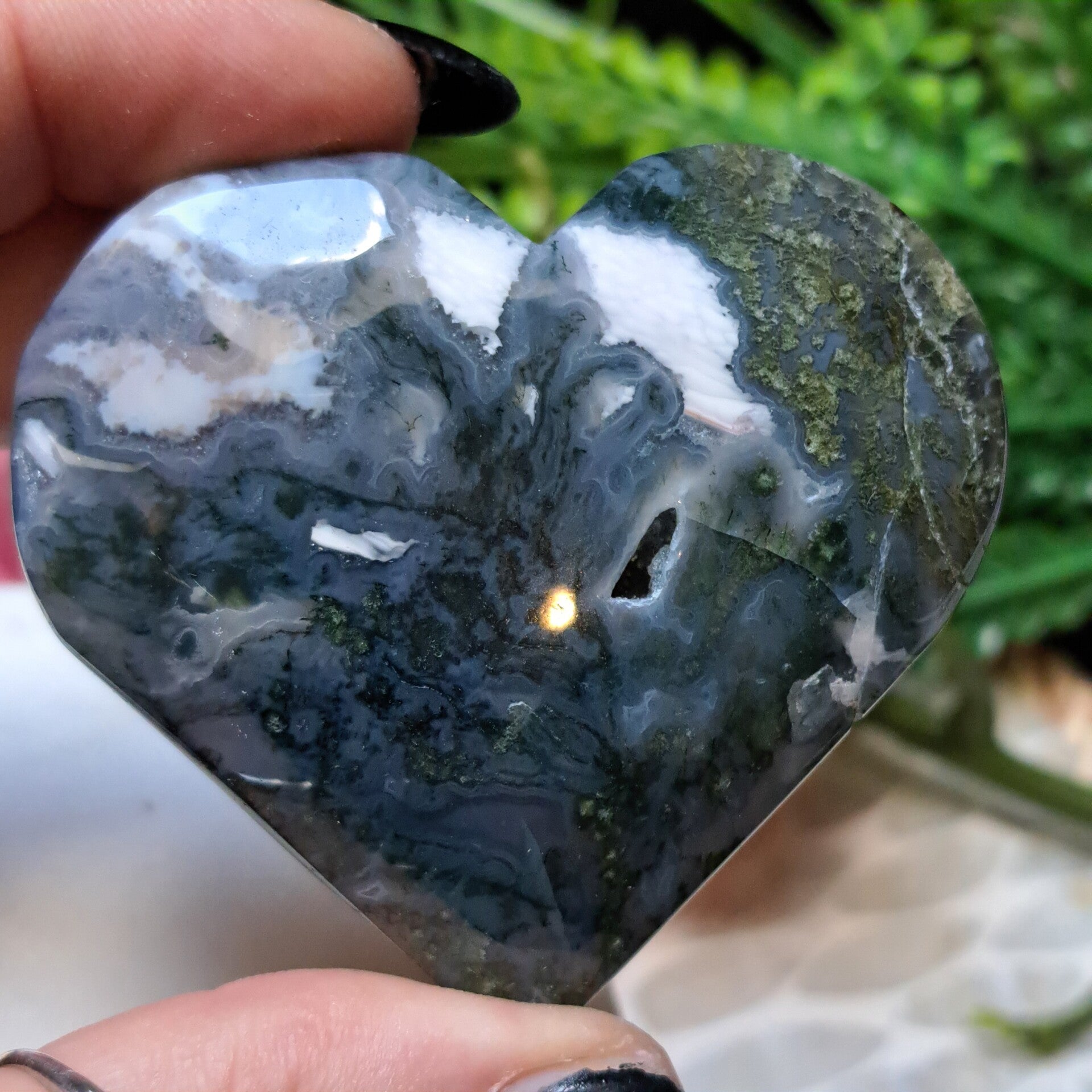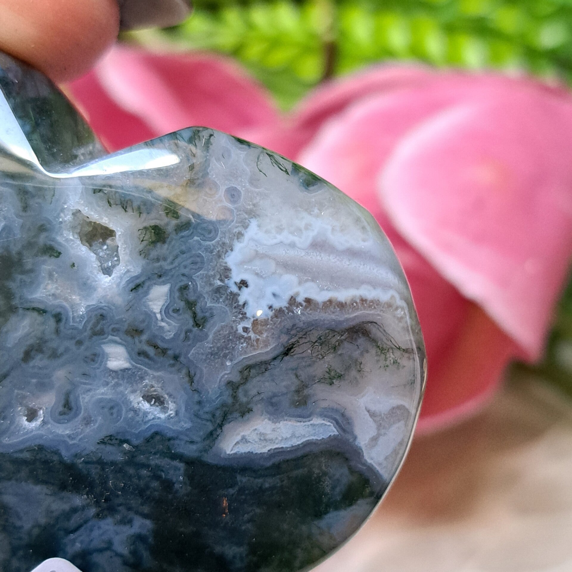 Mosagaat werkt aardend, stabiliserend en trekt succes, welvaart en voorspoed aan. Mosagaat is ook heel geschikt om bij je te dragen bij herstel na ziekte. Om tot rust te komen na onrust of om weer tot jezelf te komen.