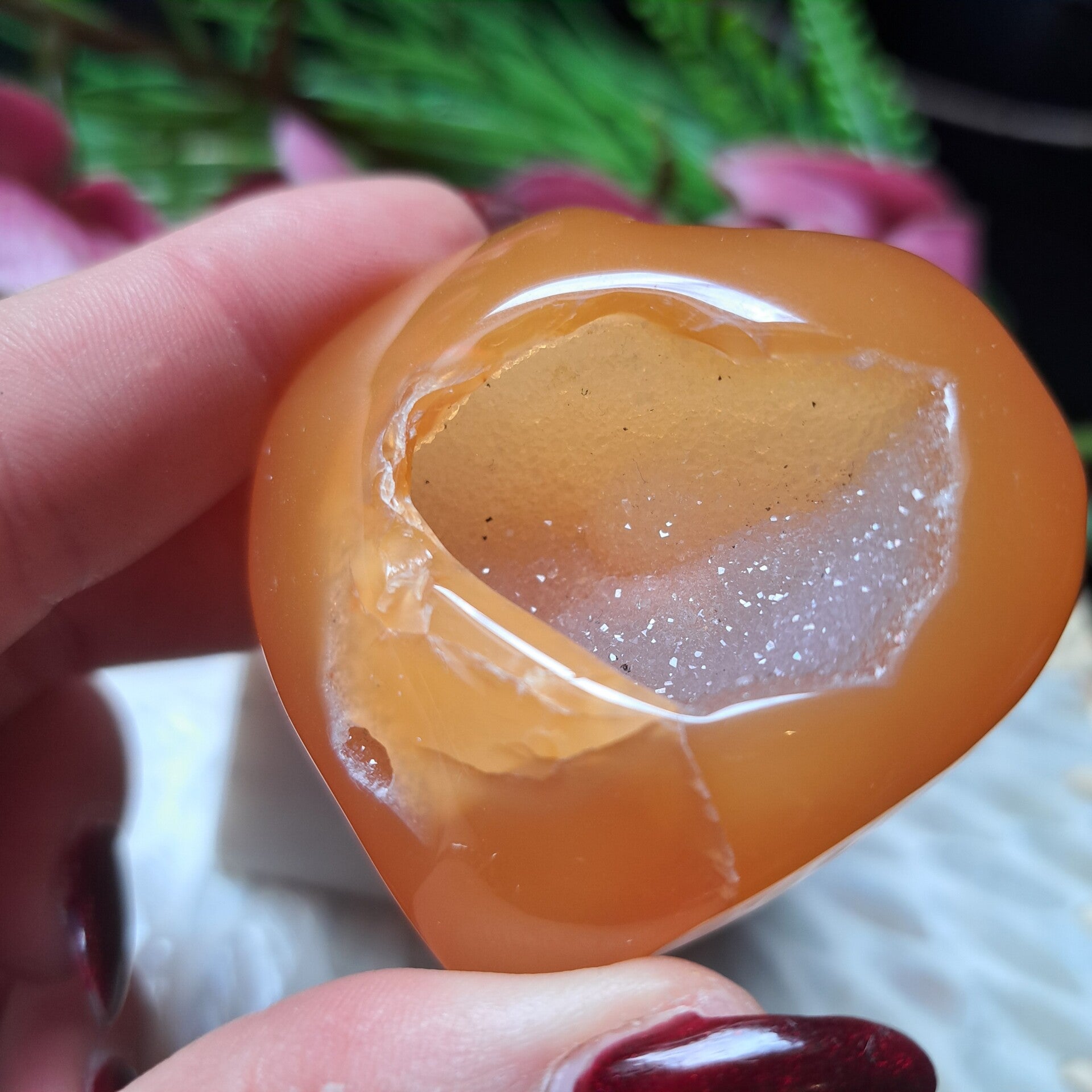 Dit mooie drusy hart is 87 gram en 5,5cm groot.