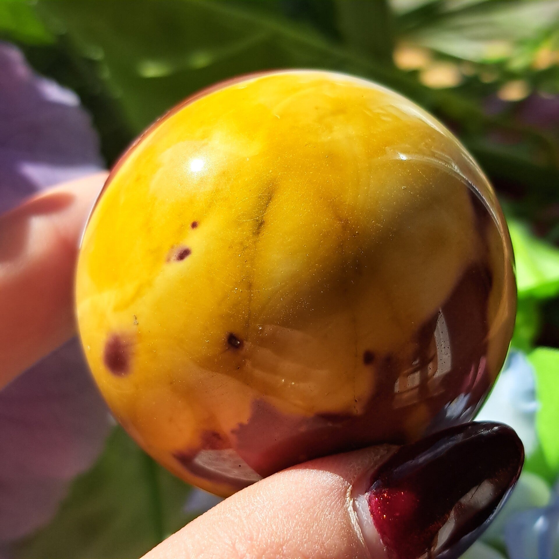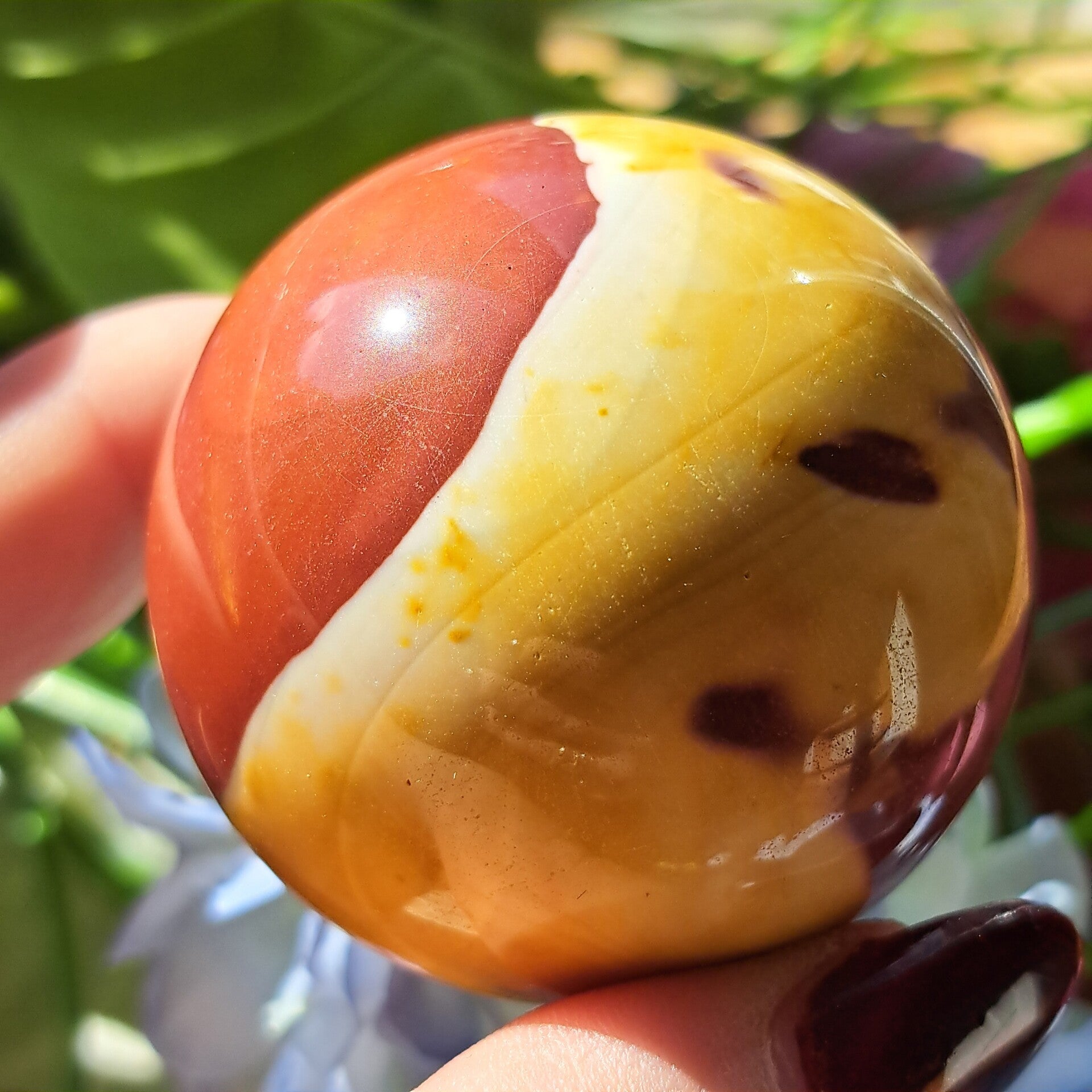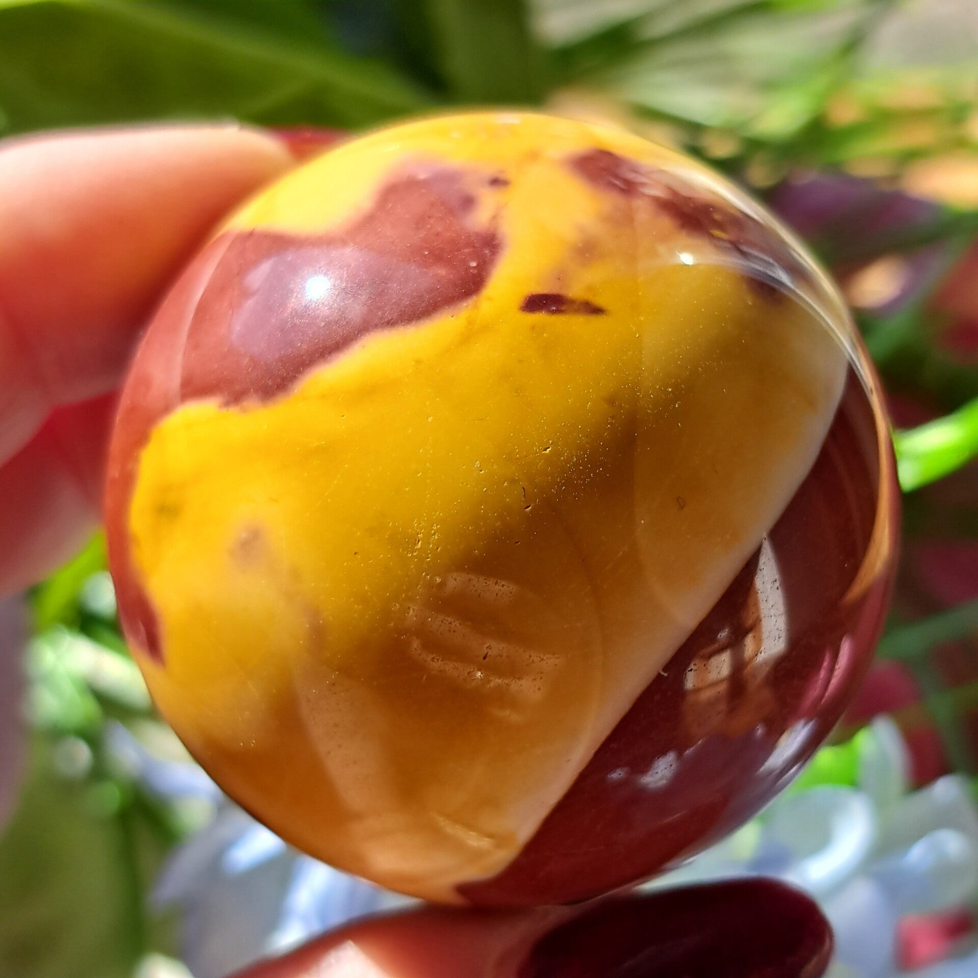Mookaiet is een sterk aardendende en verwarmende steen met aparte marmering van de kleuren geel, wit, rood en soms zelfs paars.