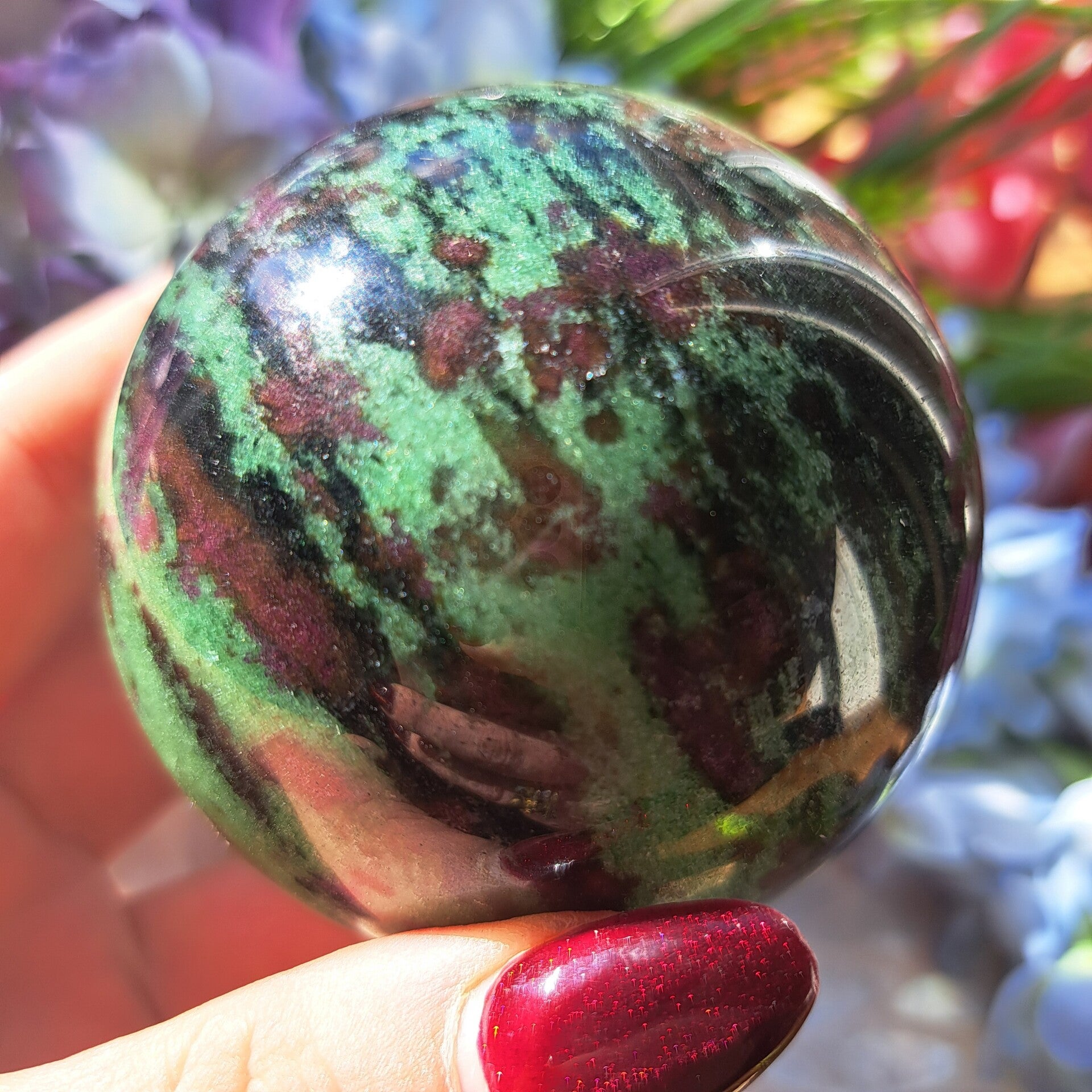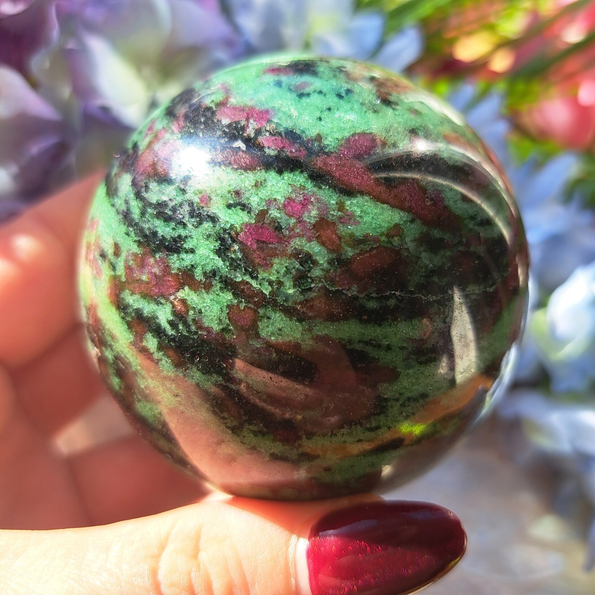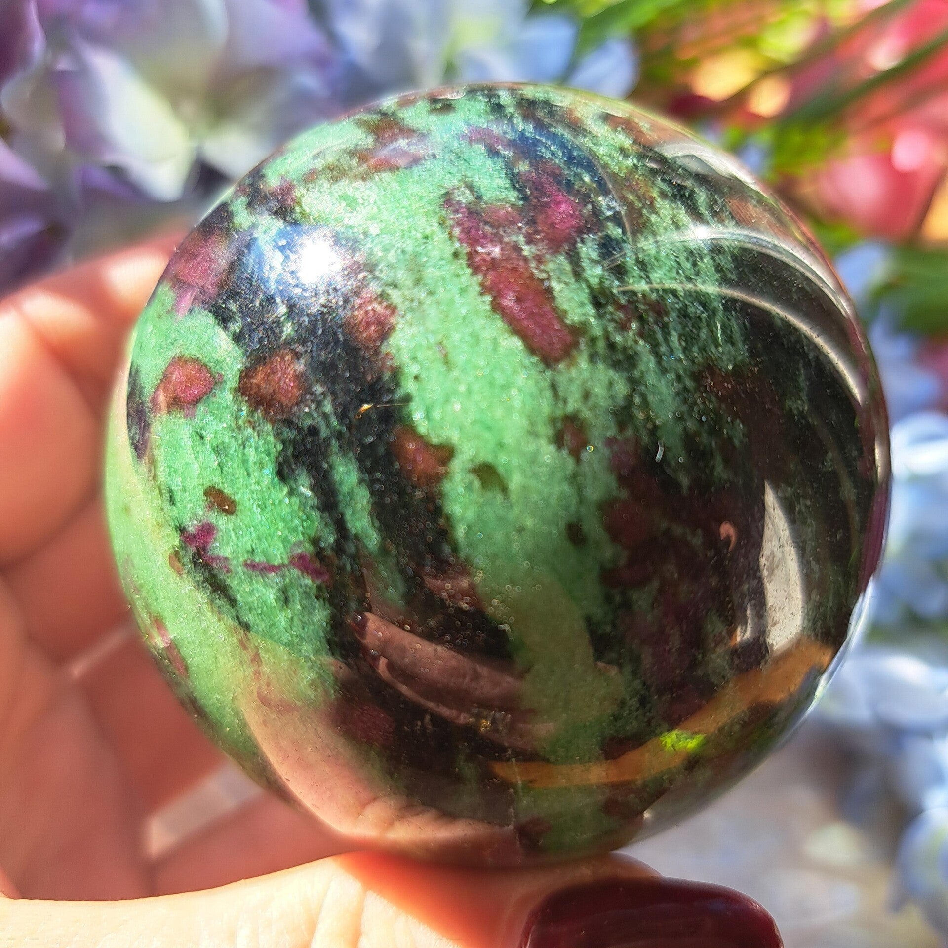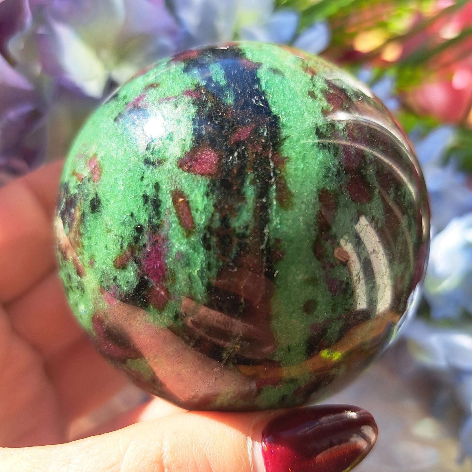 Robijn in zoïsiet staat voor spiritualiteit & vitaliteit. Zoisiet is een verzachter en verzacht de eigenschappen van de robijn. Ze versterkt een gevoel van individualiteit en ook verbondenheid. Hierdoor zal het gemakkelijker worden om in een groep bij jezelf te blijven.