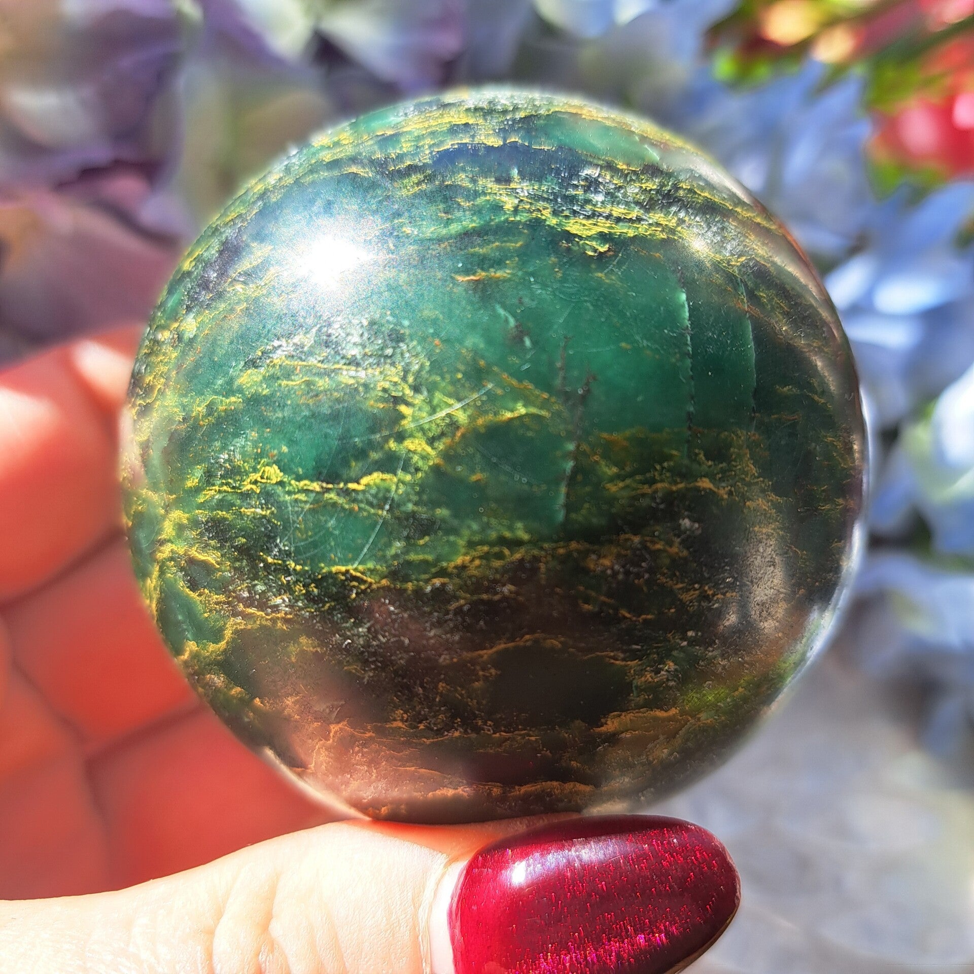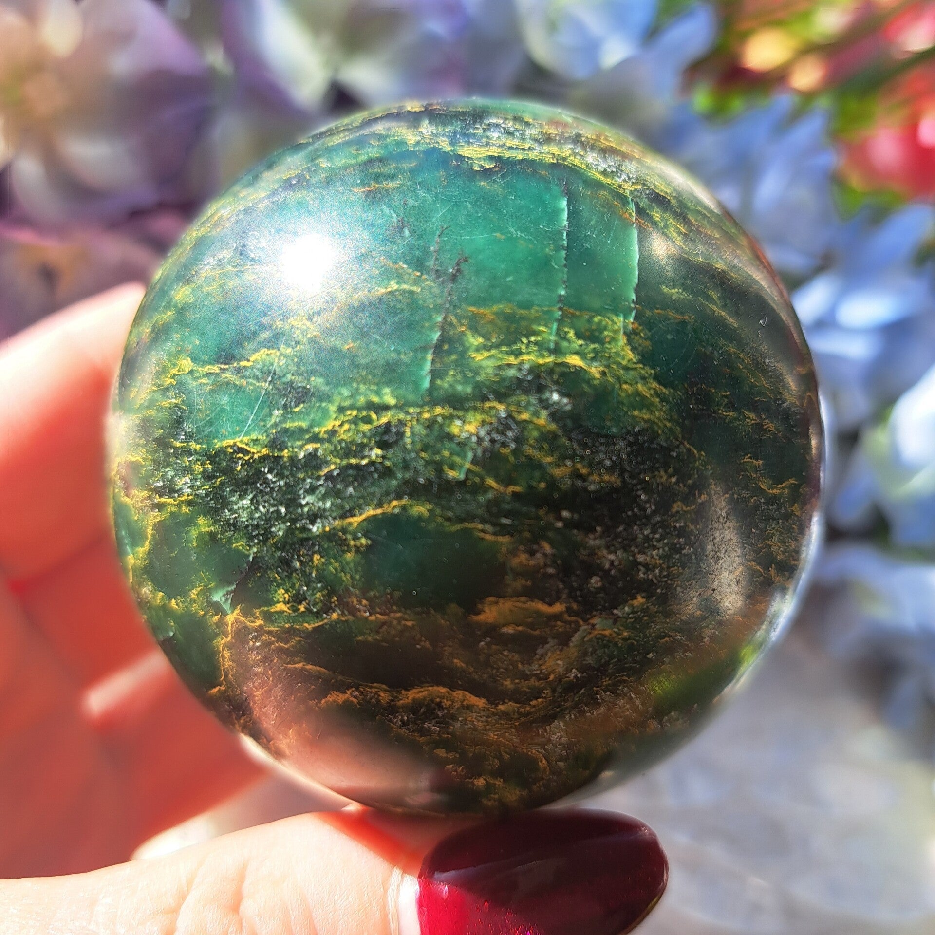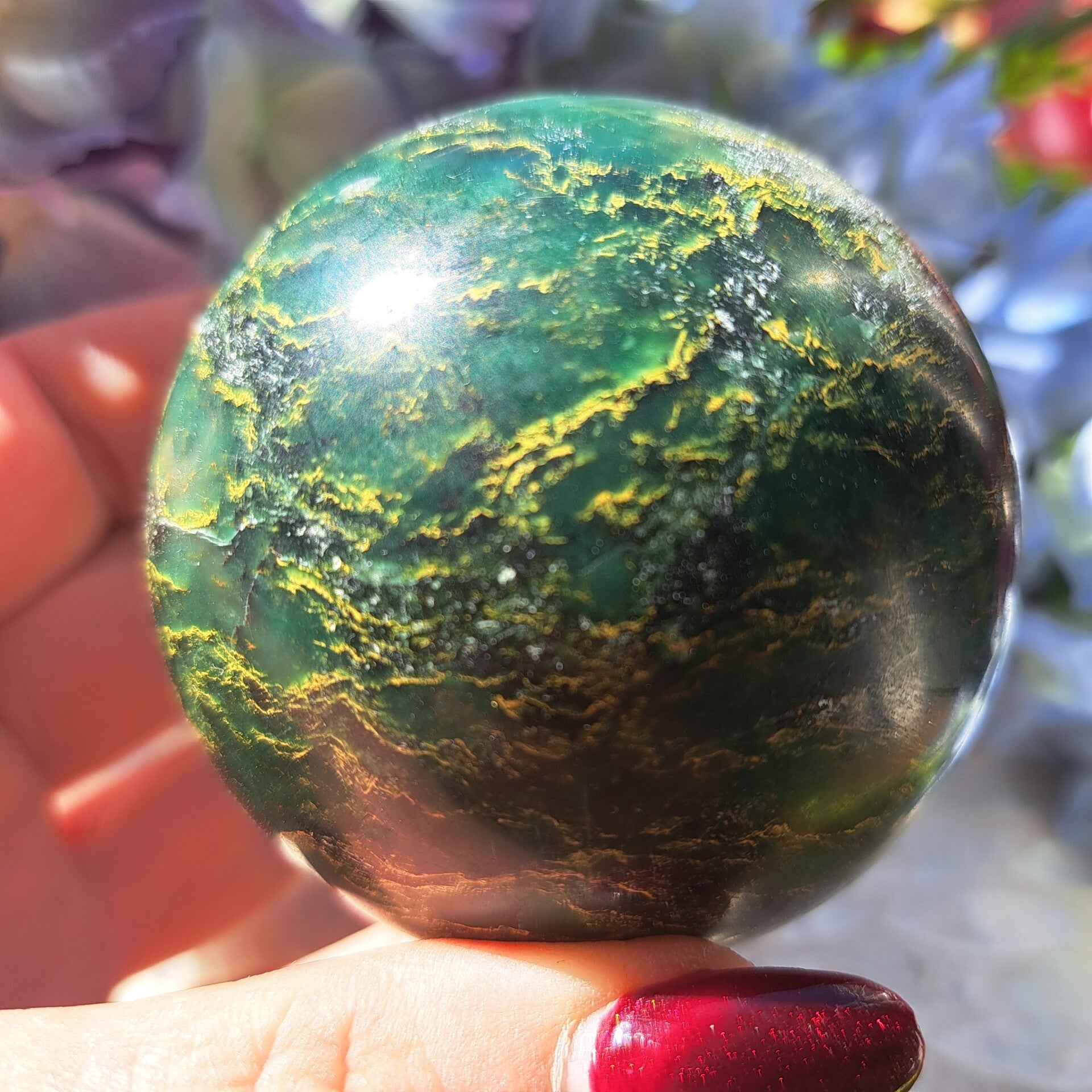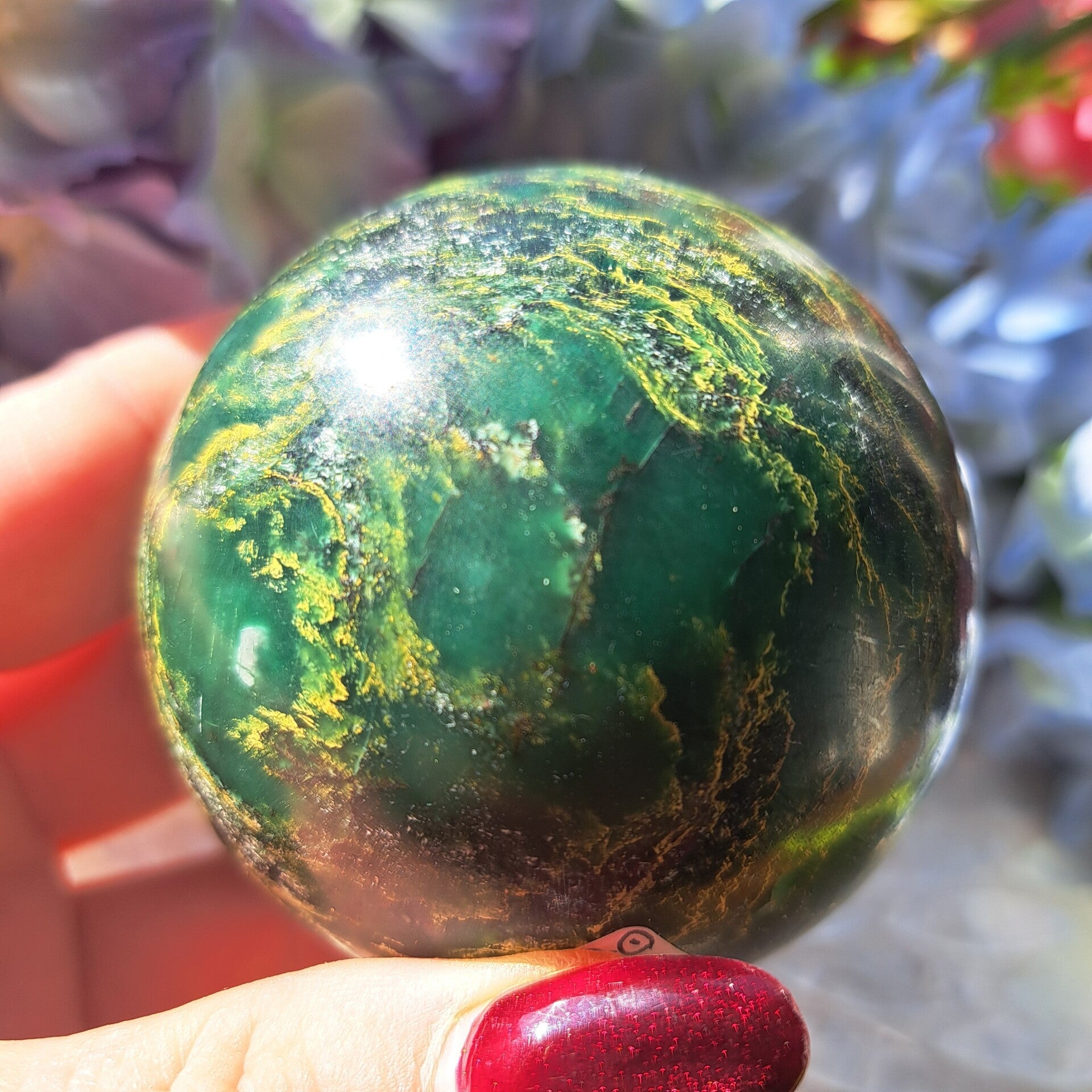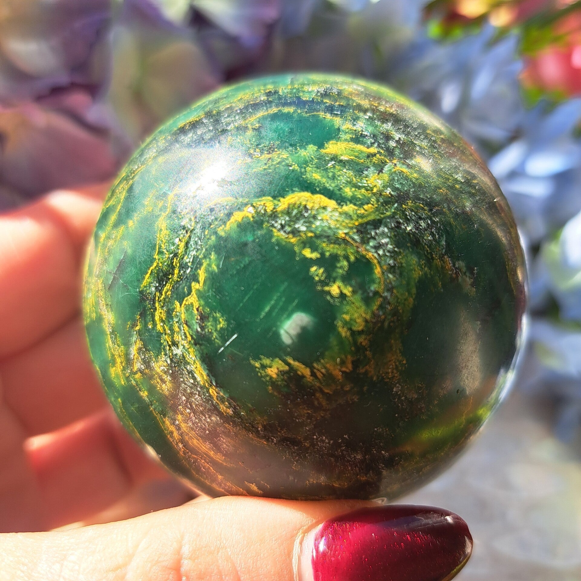 Deze Toffe Bol uit Brazilie is van prachtig lijnenspel en is 470 gram en 6,8 cm groot.