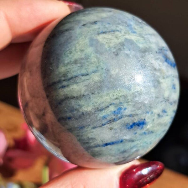 Deze prachtige Bol van UV reactief Hackmaniet (Afghanistan) is 282 gram en 5,7cm groot.