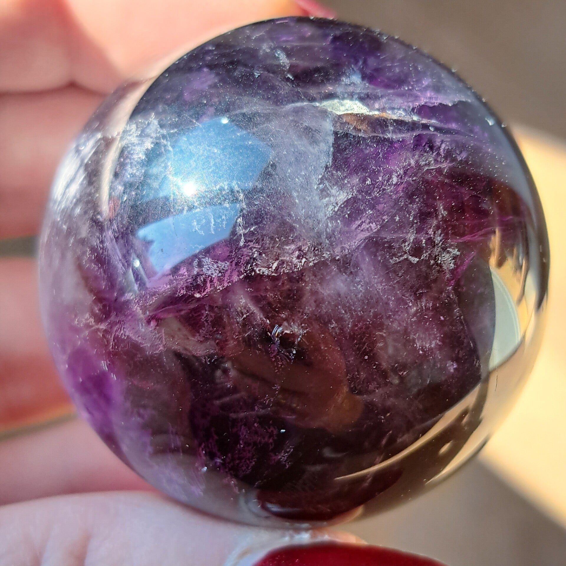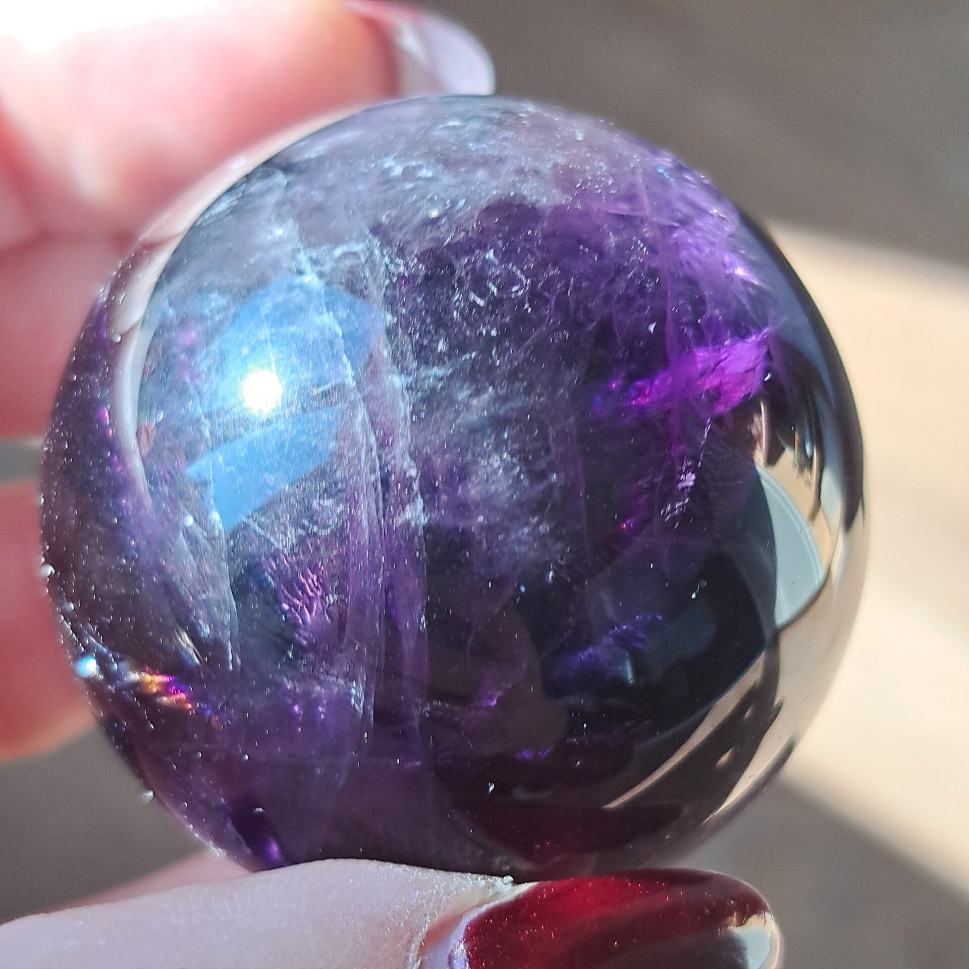 Deze toffe dieppaarse bol uit Brazilie is 141 gram en 4,6 cm groot.