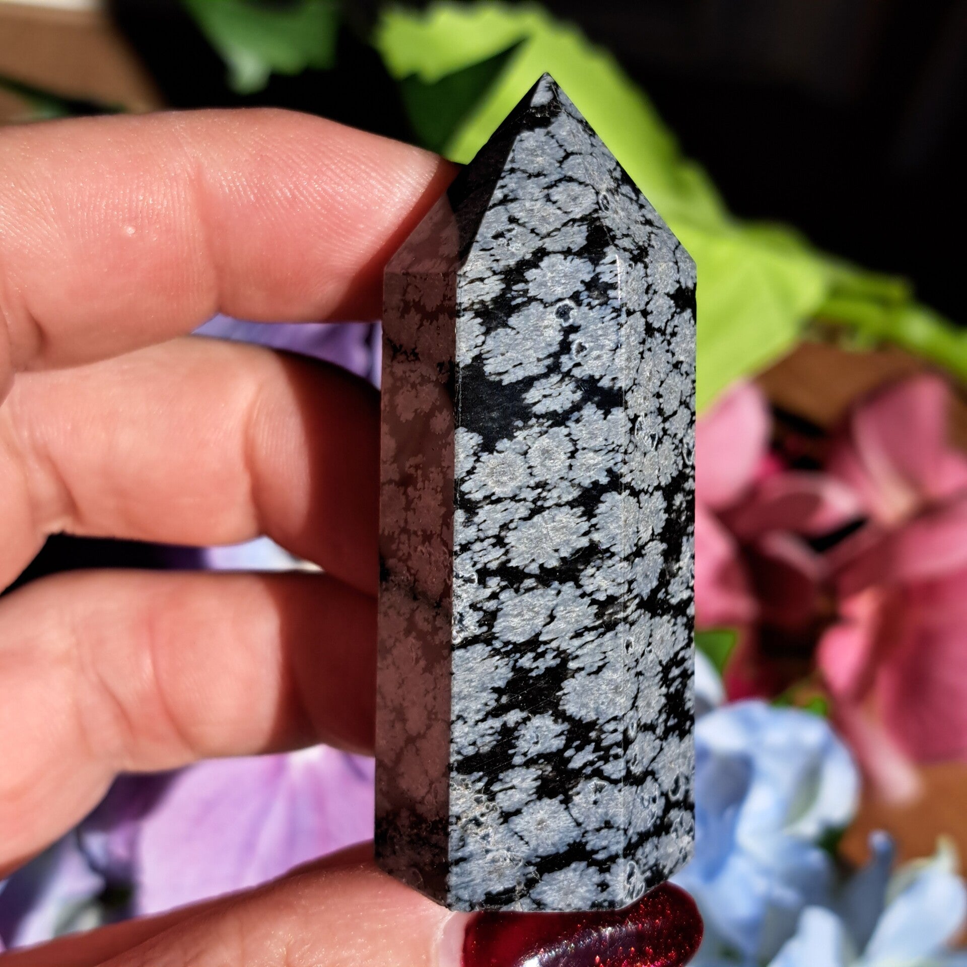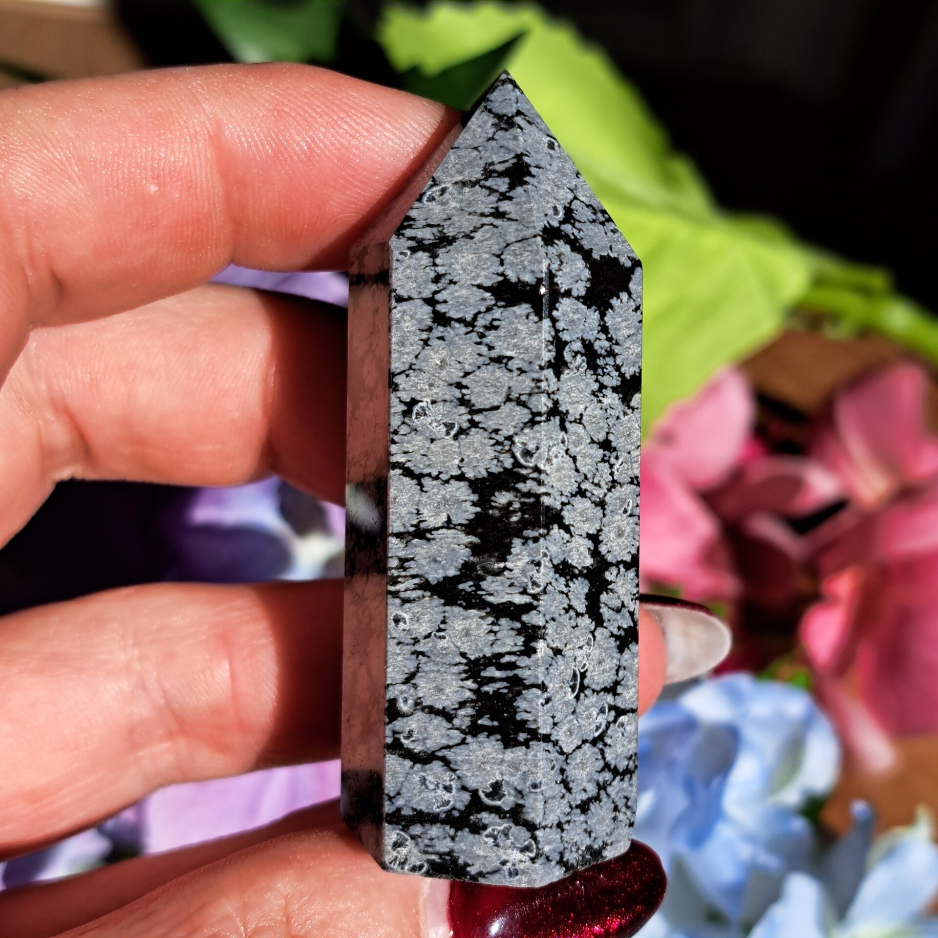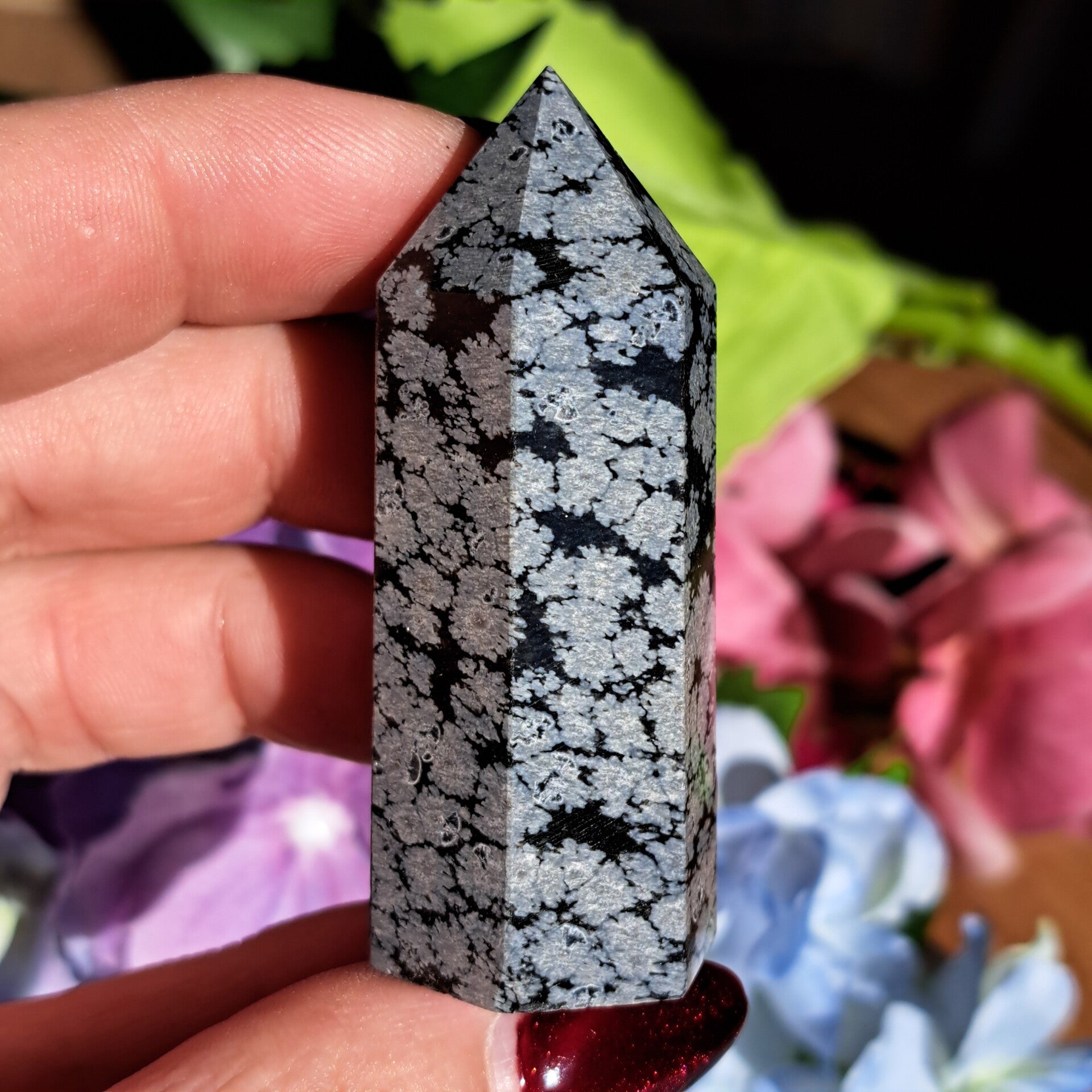 Dit zachtere zusje van de krachtige obsidiaan is de Sneeuwvlok Obsidiaan.
