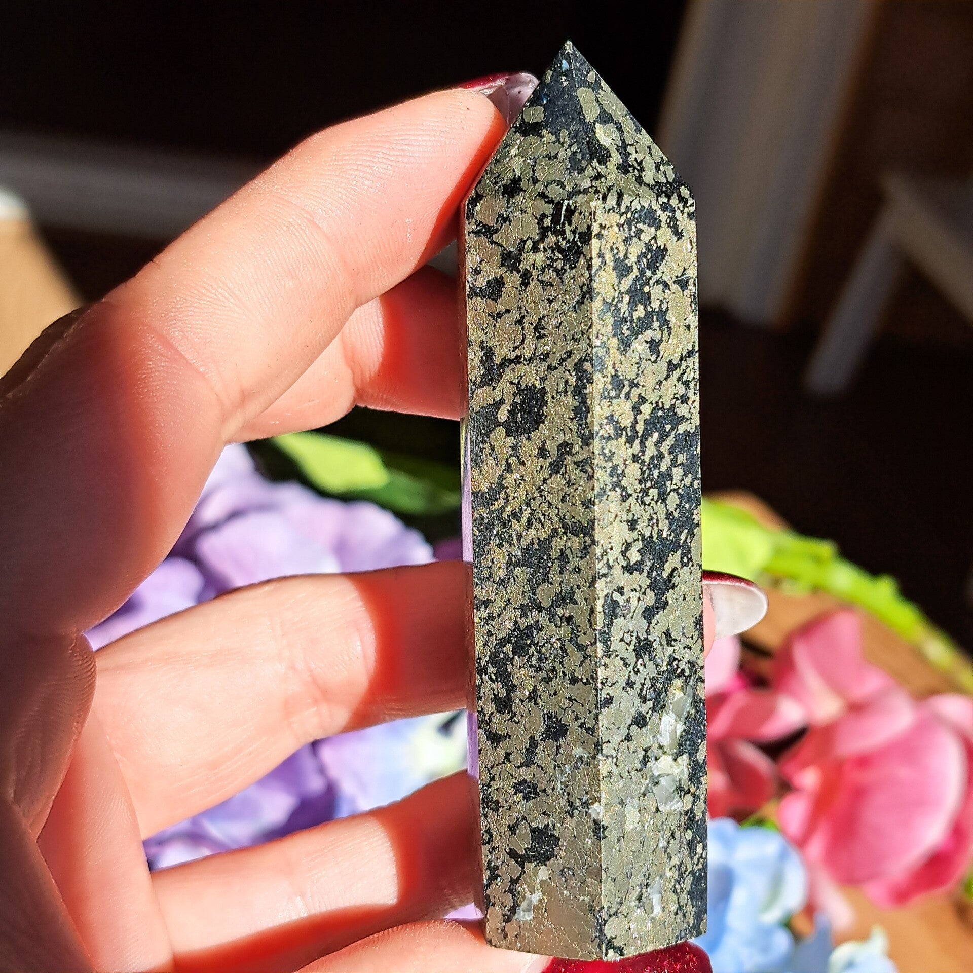 Pyriet staat voor Bevrijding en Zelfreflectie en volgens de edelsteentherapie wordt deze ingezet bij pijngefixeerde klachten en werkt ze sterk pijnstillend. Ook bij bloedstoornissen en menstruatiekrampen verlicht ze. Pyriet maakt tevens vrolijk en opgewekt en laat je om jezelf lachen.