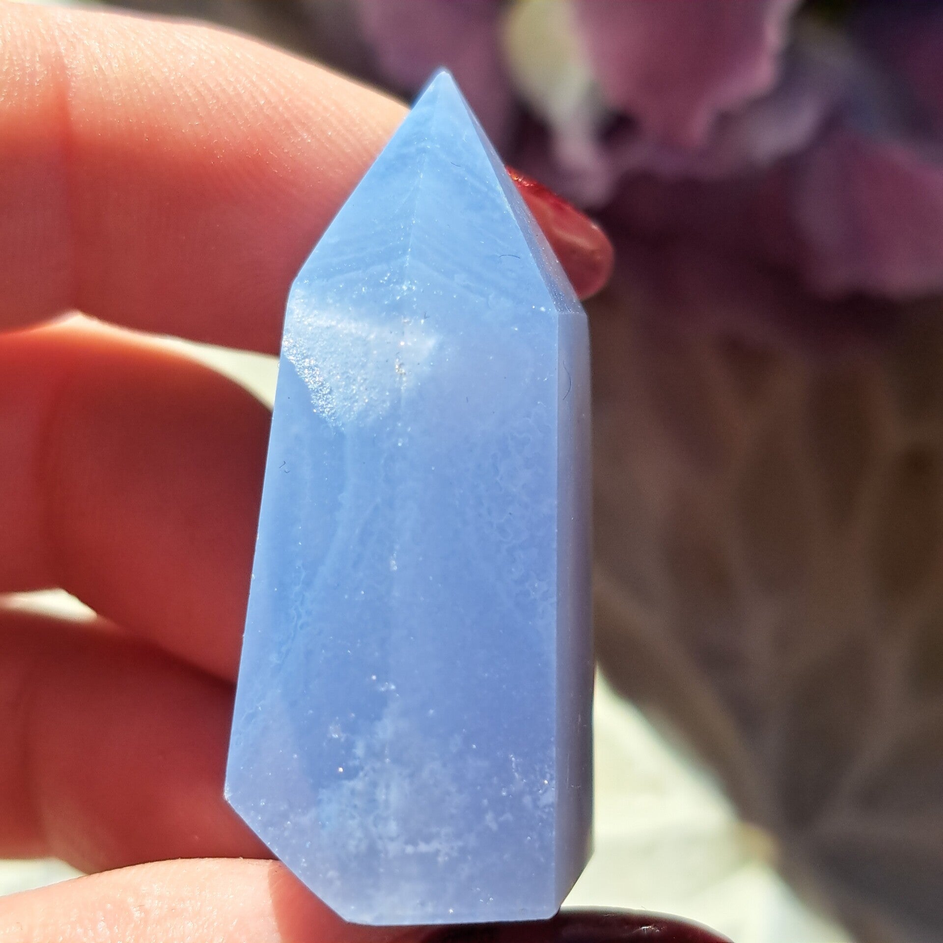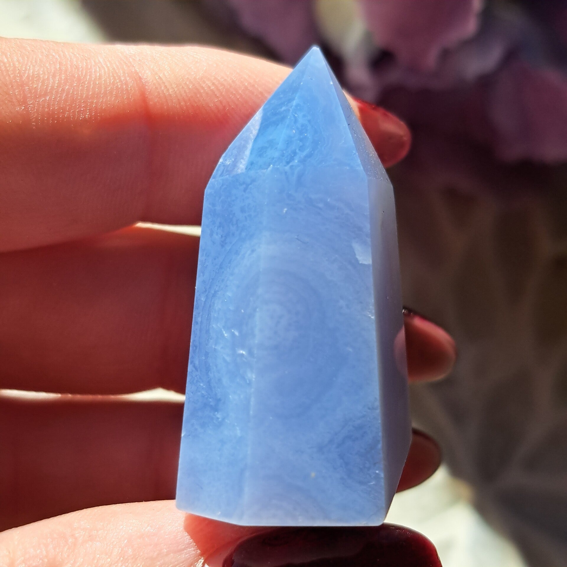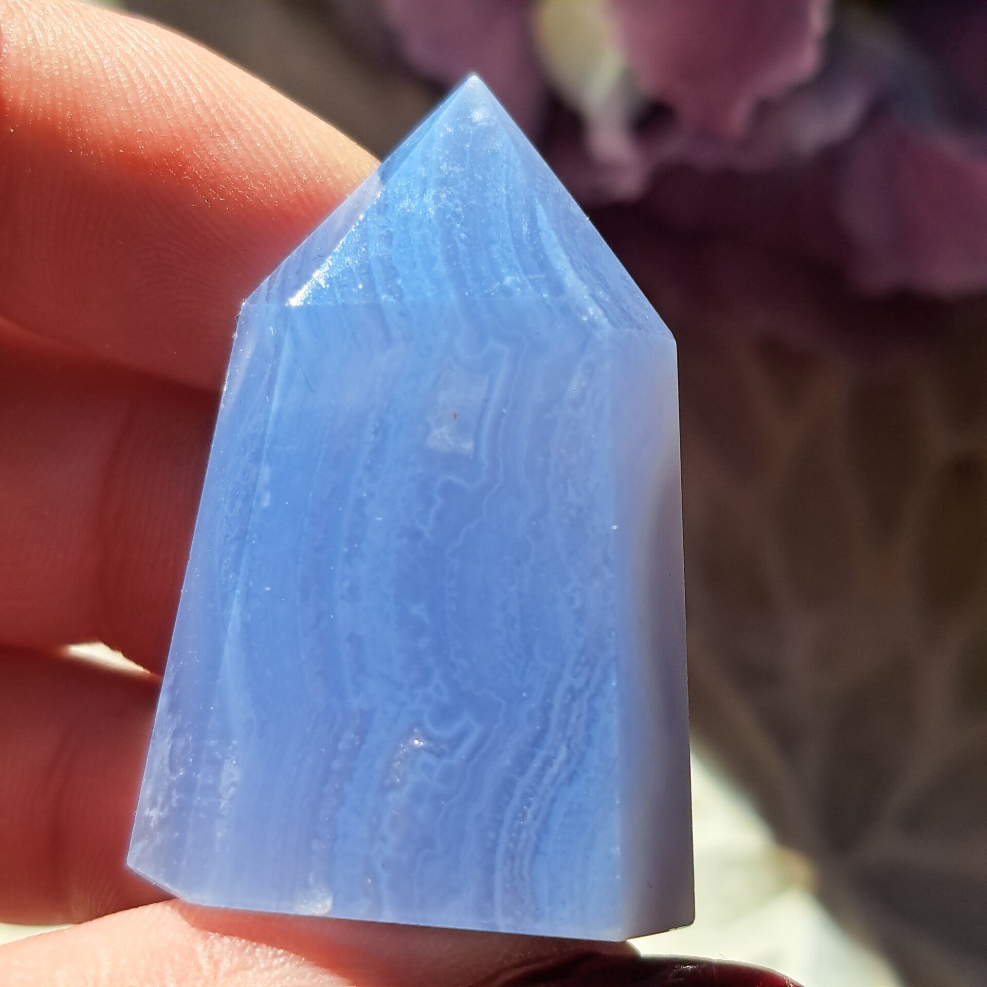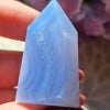 Blauwe Chalcedoon staat bekend om haar beschermende en zachte werking.