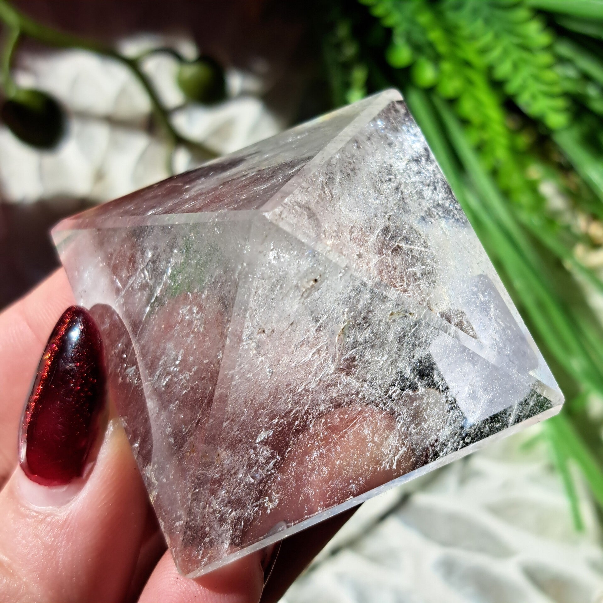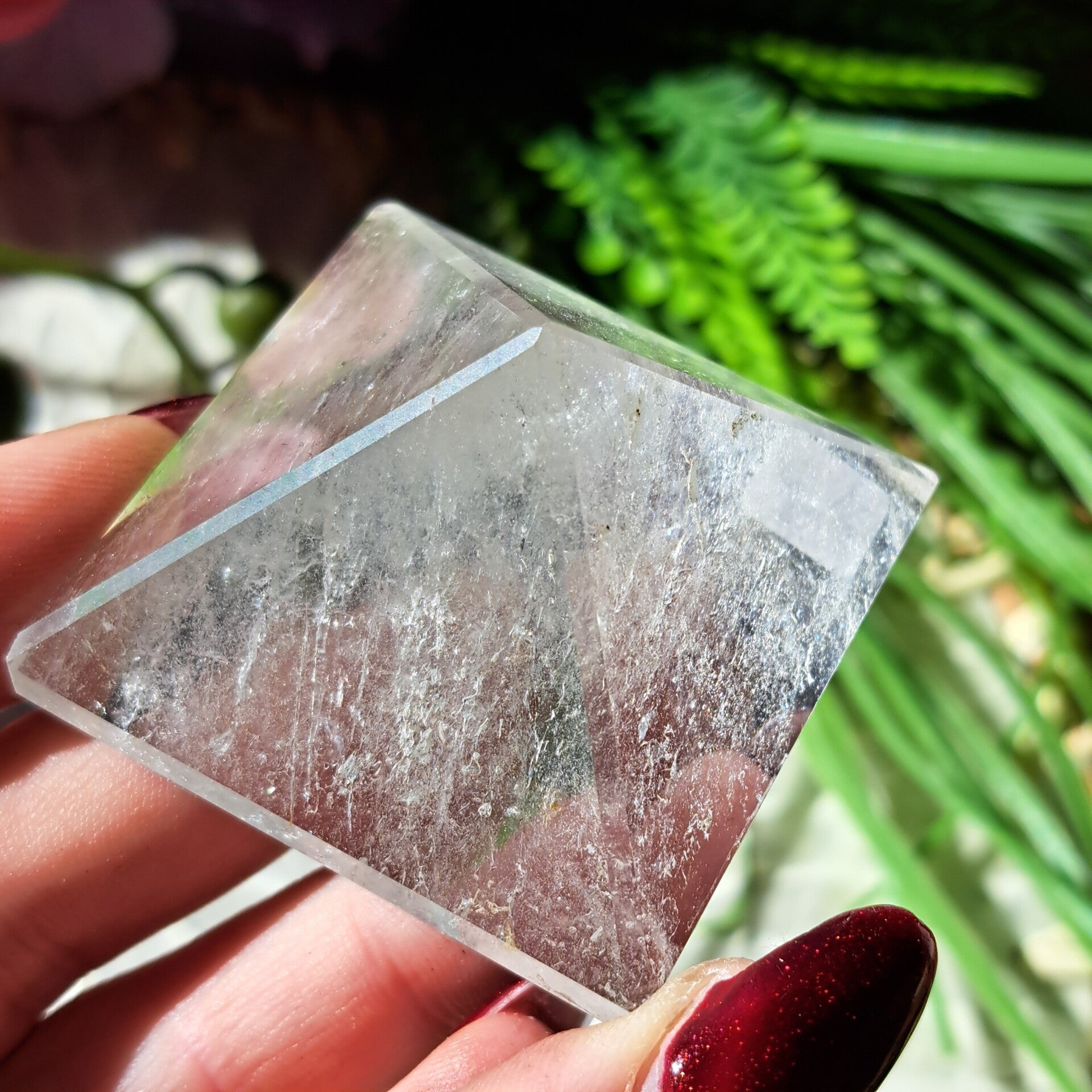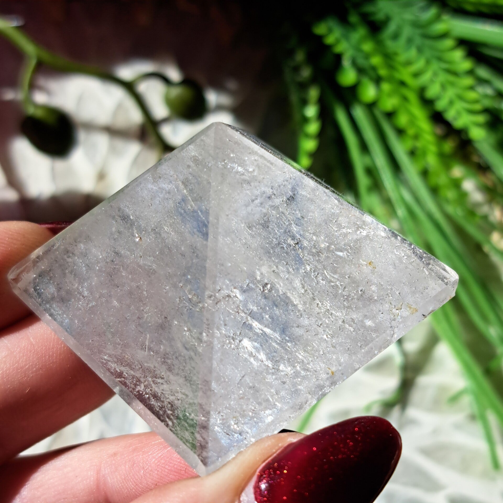 Deze toffe transparante kwarts piramide heeft een basis van is 4,7 cm.