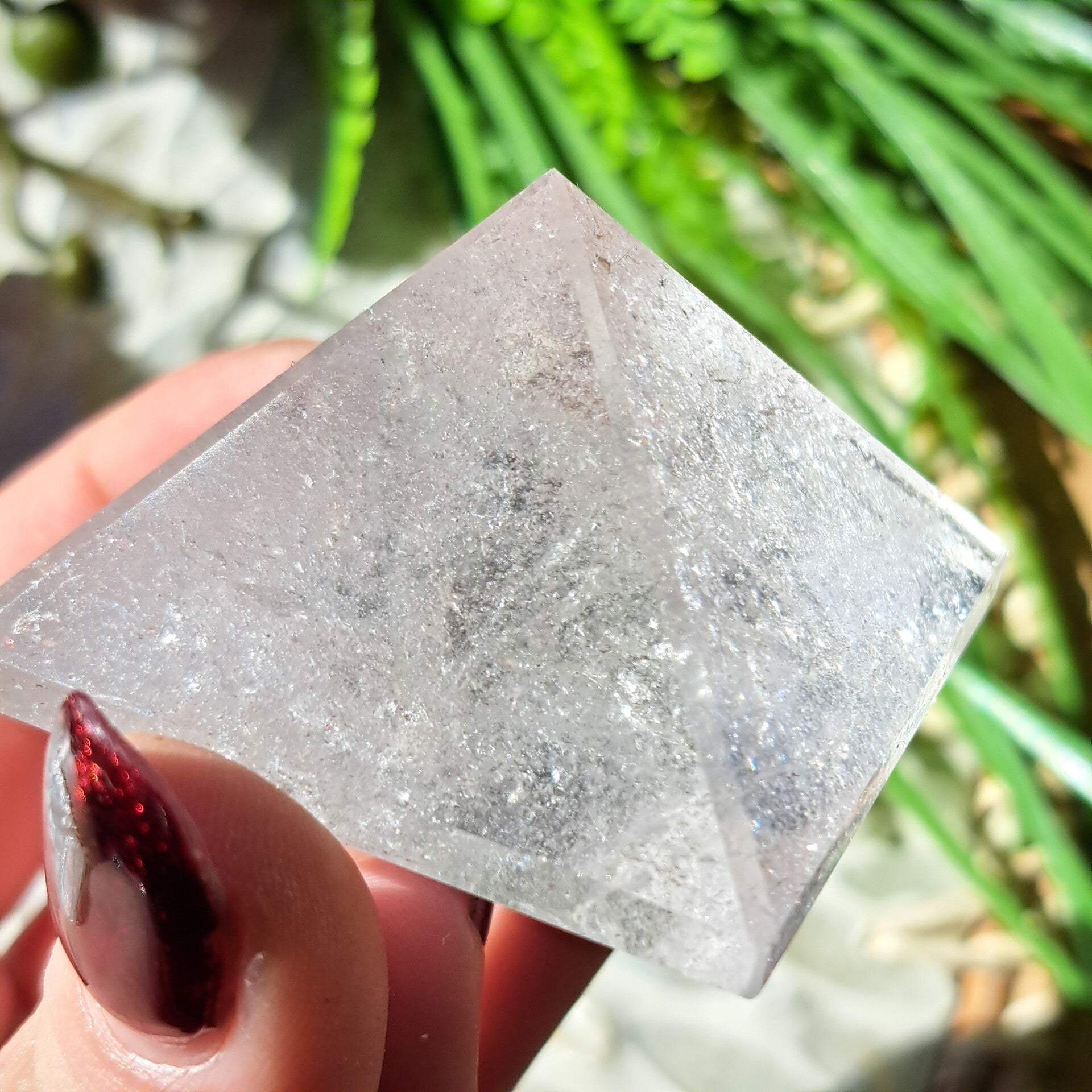 Deze toffe transparante kwarts piramide heeft een basis van is 4,7 cm.