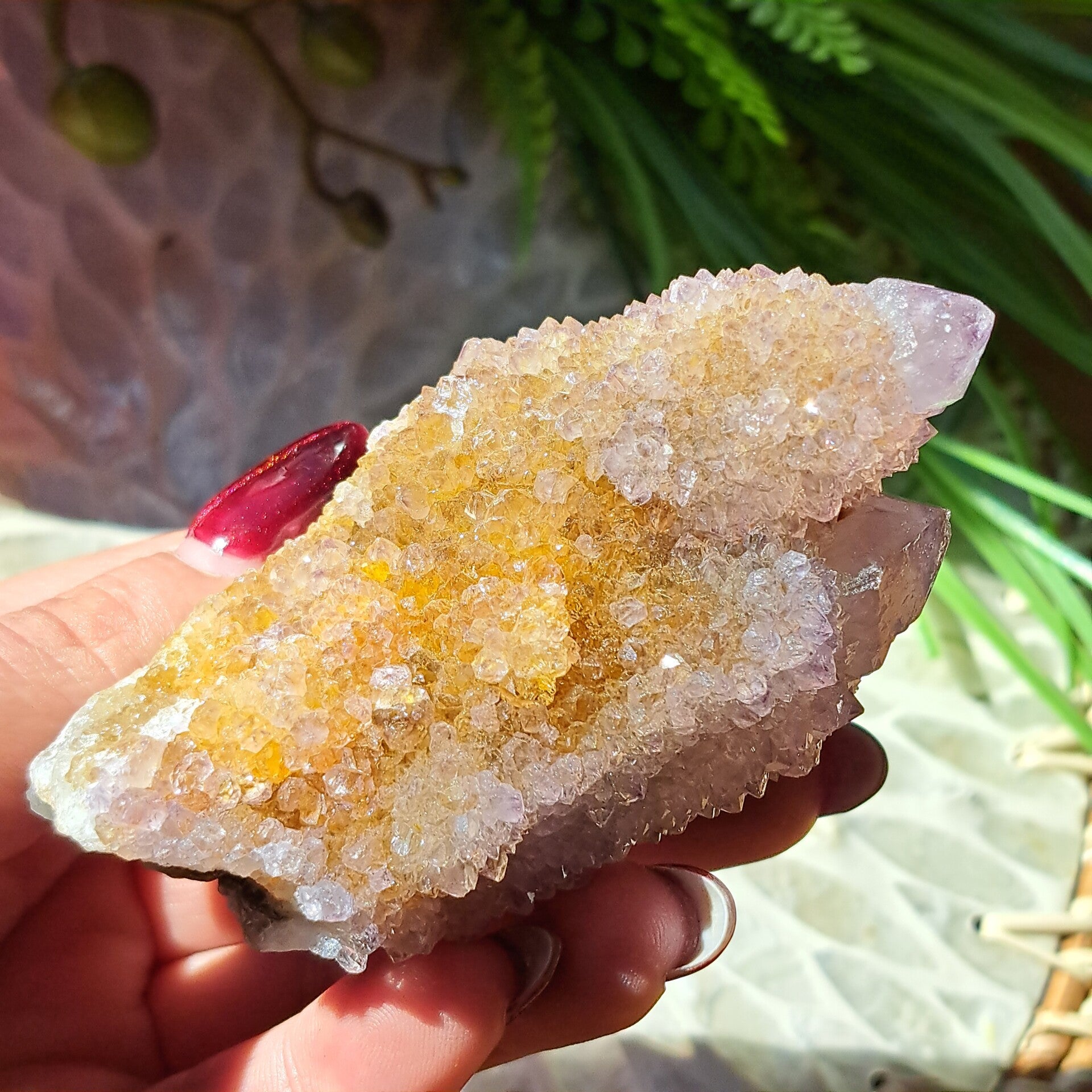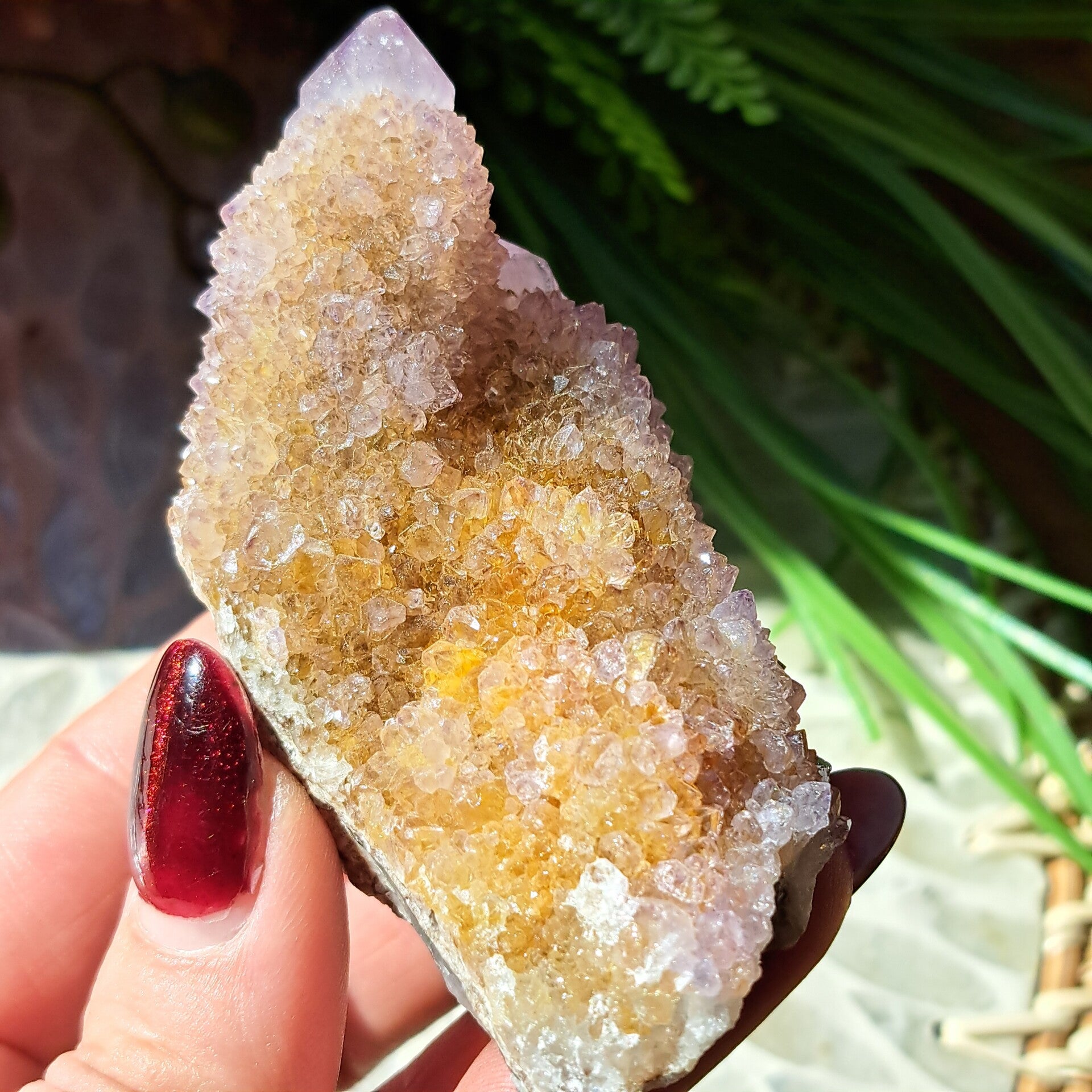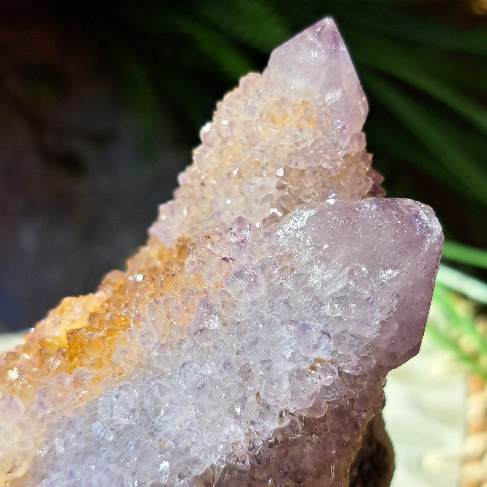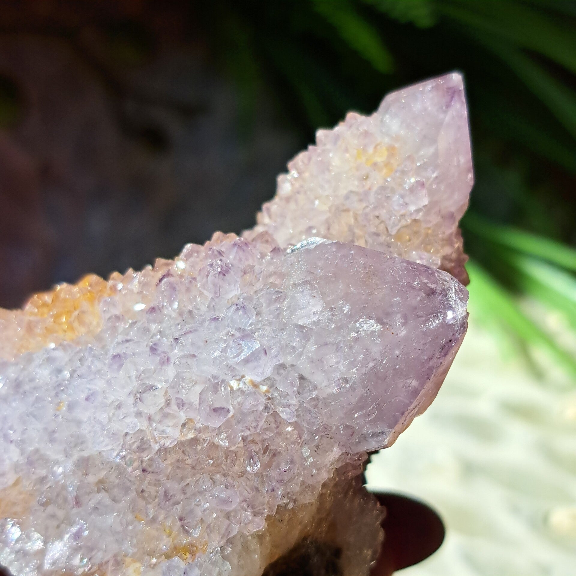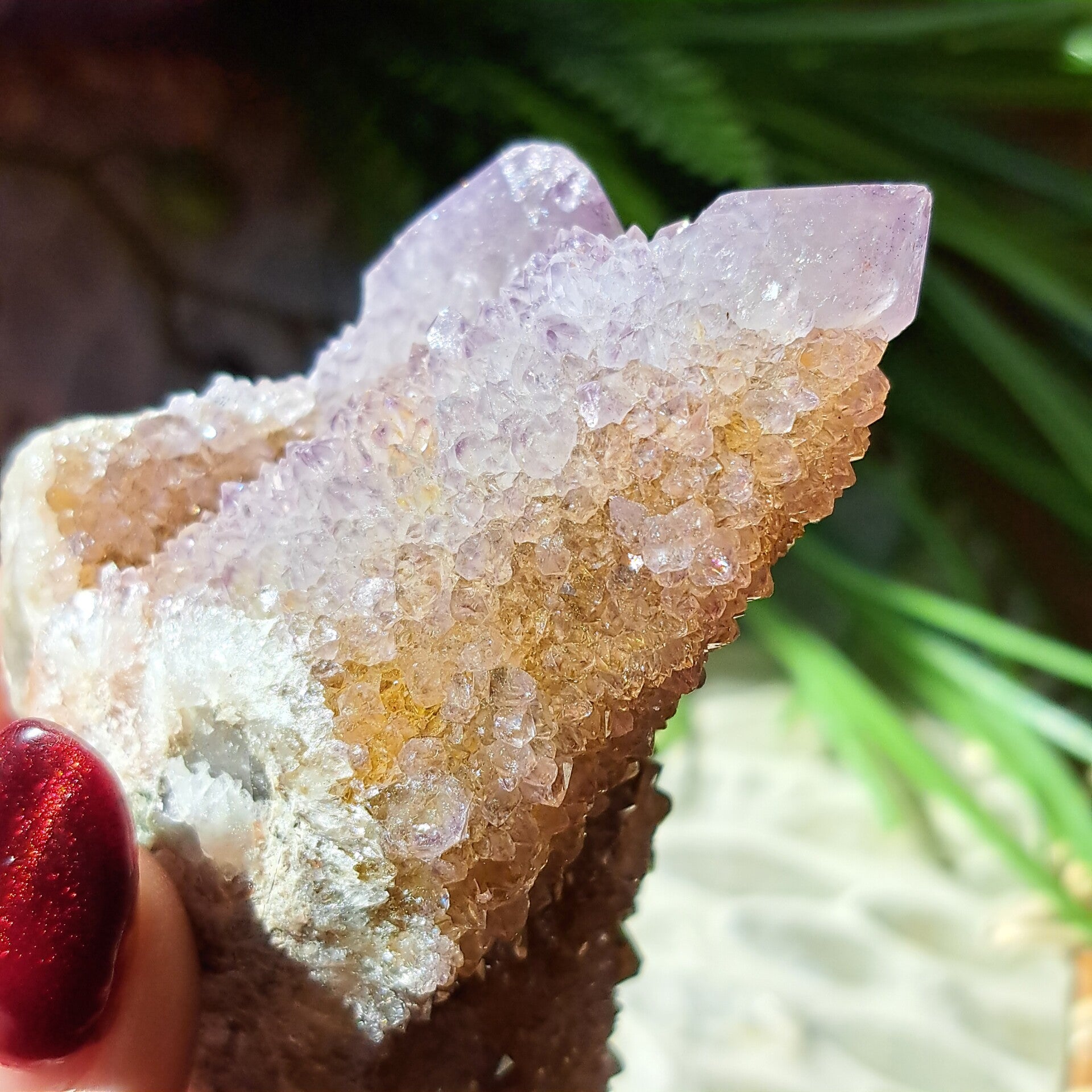 Deze gave soort van Amethist wordt ook wel cactus of spirit amethist genoemd en dankt haar naam aan de groei, een amethistpunt begroeid met heel veel kleinere kristalpuntjes.