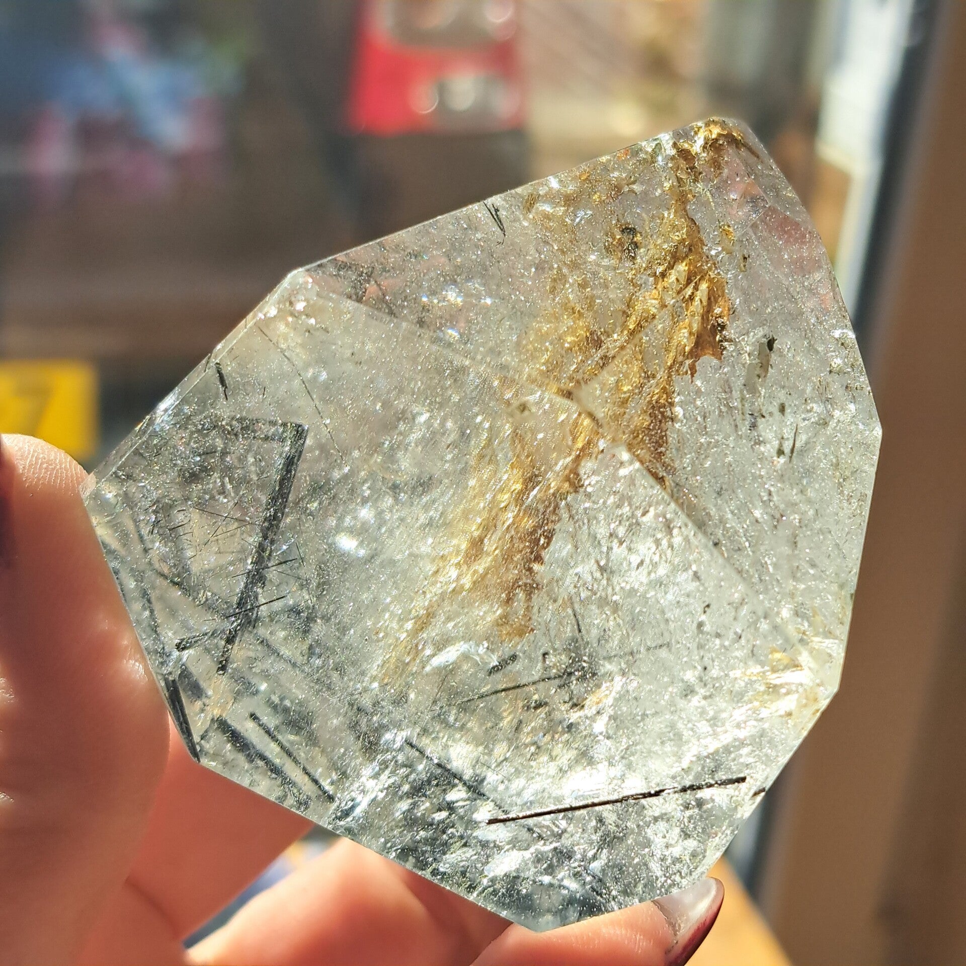 Het is een combinatie van (rook)kwarts met rutiel (Titanium Oxide Mineraal) en de insluitingen van rutiel lijken op naaldjes of draden van brons, koperkleur of goud. Des te dikker de naalden des te dichter of ondoorzichtiger de kwarts is.