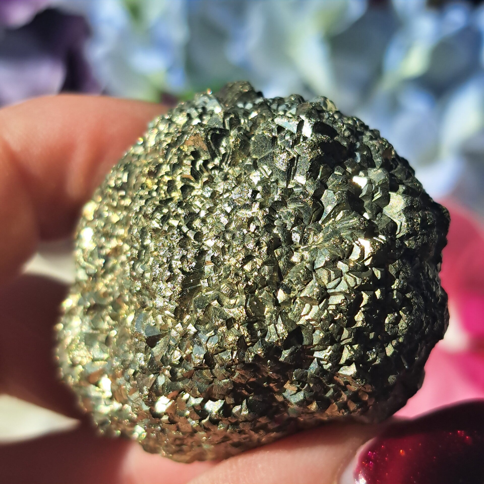 Pyriet staat voor Bevrijding en Zelfreflectie en volgens de edelsteentherapie wordt deze ingezet bij pijngefixeerde klachten en werkt ze sterk pijnstillend. Ook bij bloedstoornissen en menstruatiekrampen verlicht ze. Pyriet maakt tevens vrolijk en opgewekt en laat je om jezelf lachen.