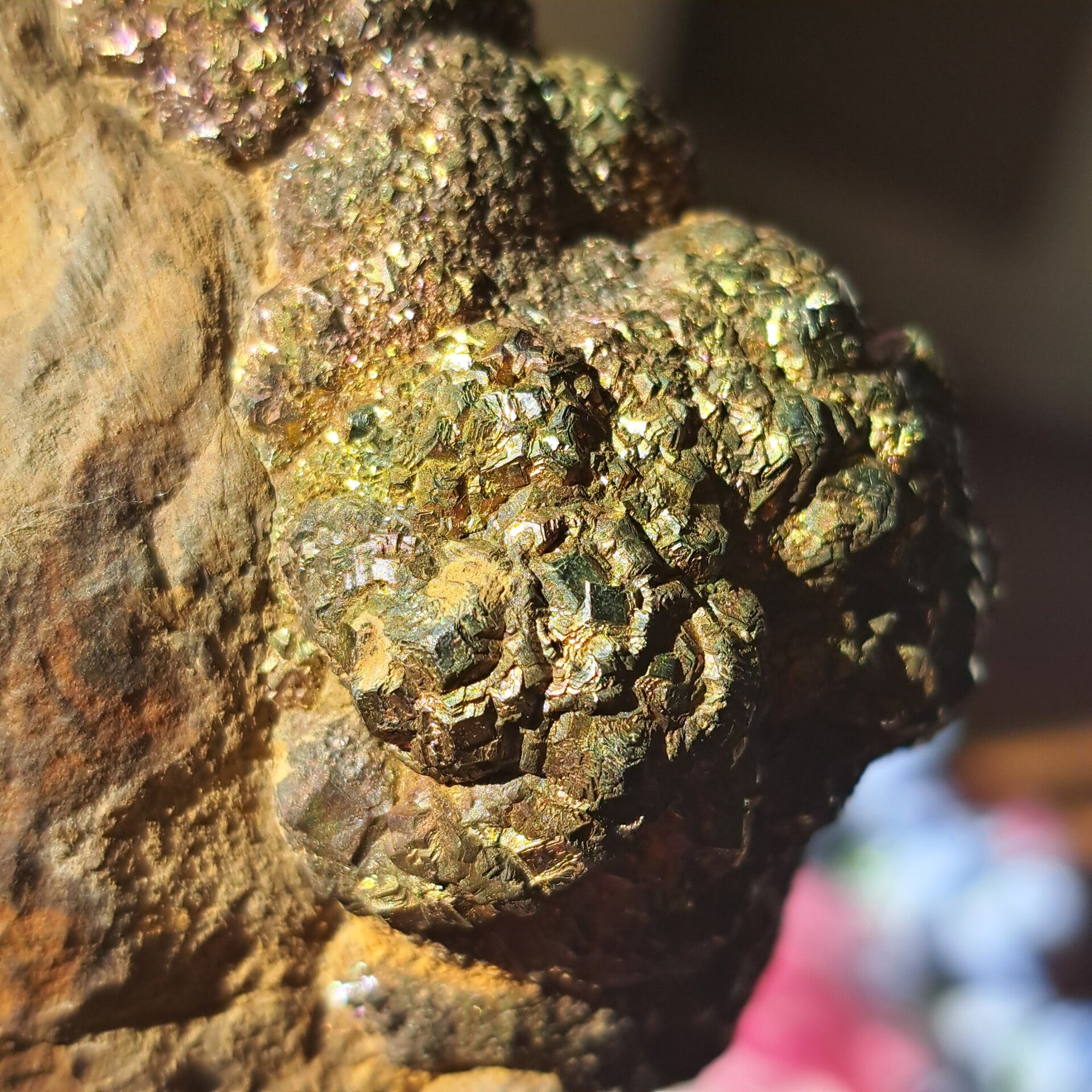 Deze gave bijzondere vondst komt uit Dara-i-Adam Khail, KPK Provincie Pakistan. Het gaat om natuurlijke pyriet met regenboogkleuren, gegroeid op matrix van limoniet.