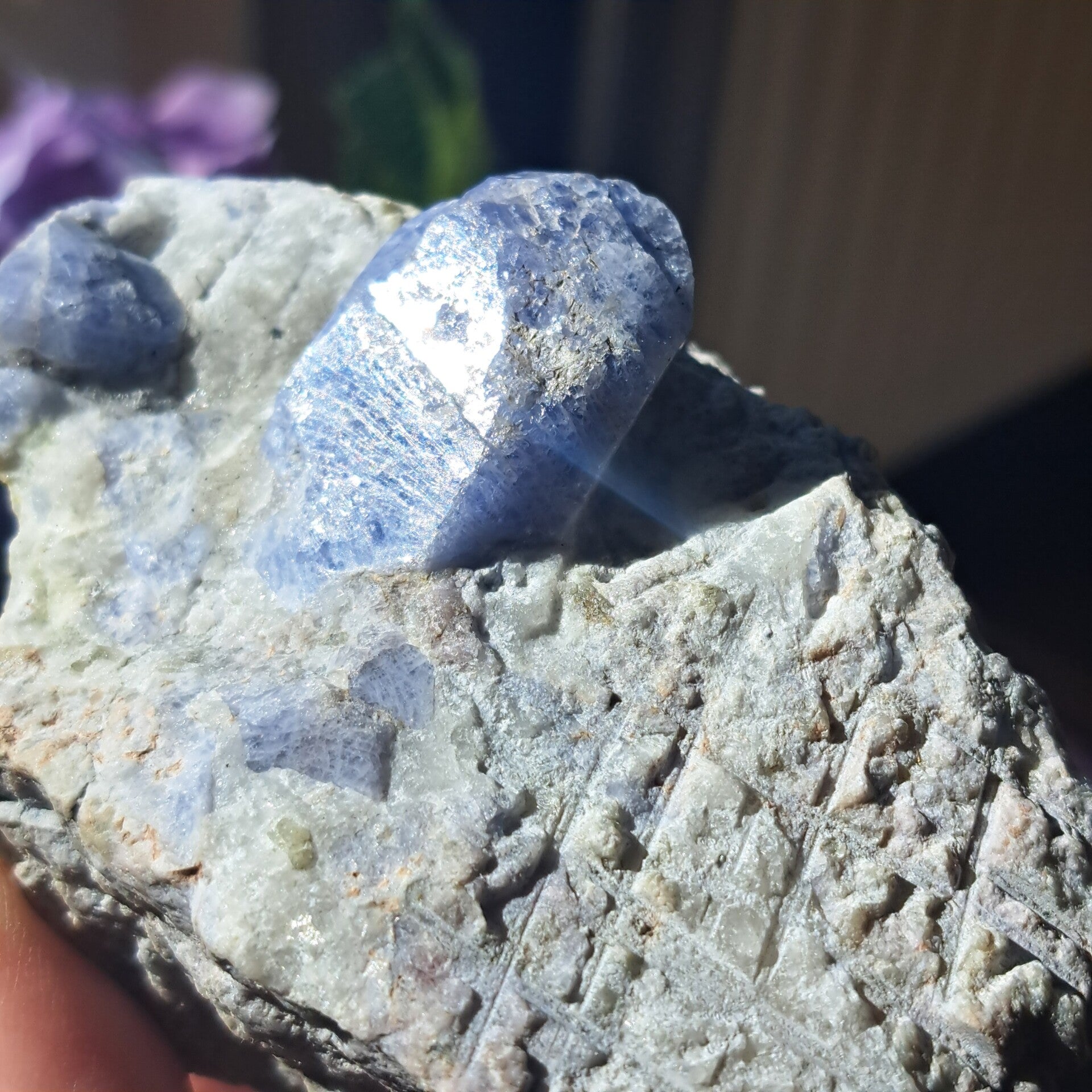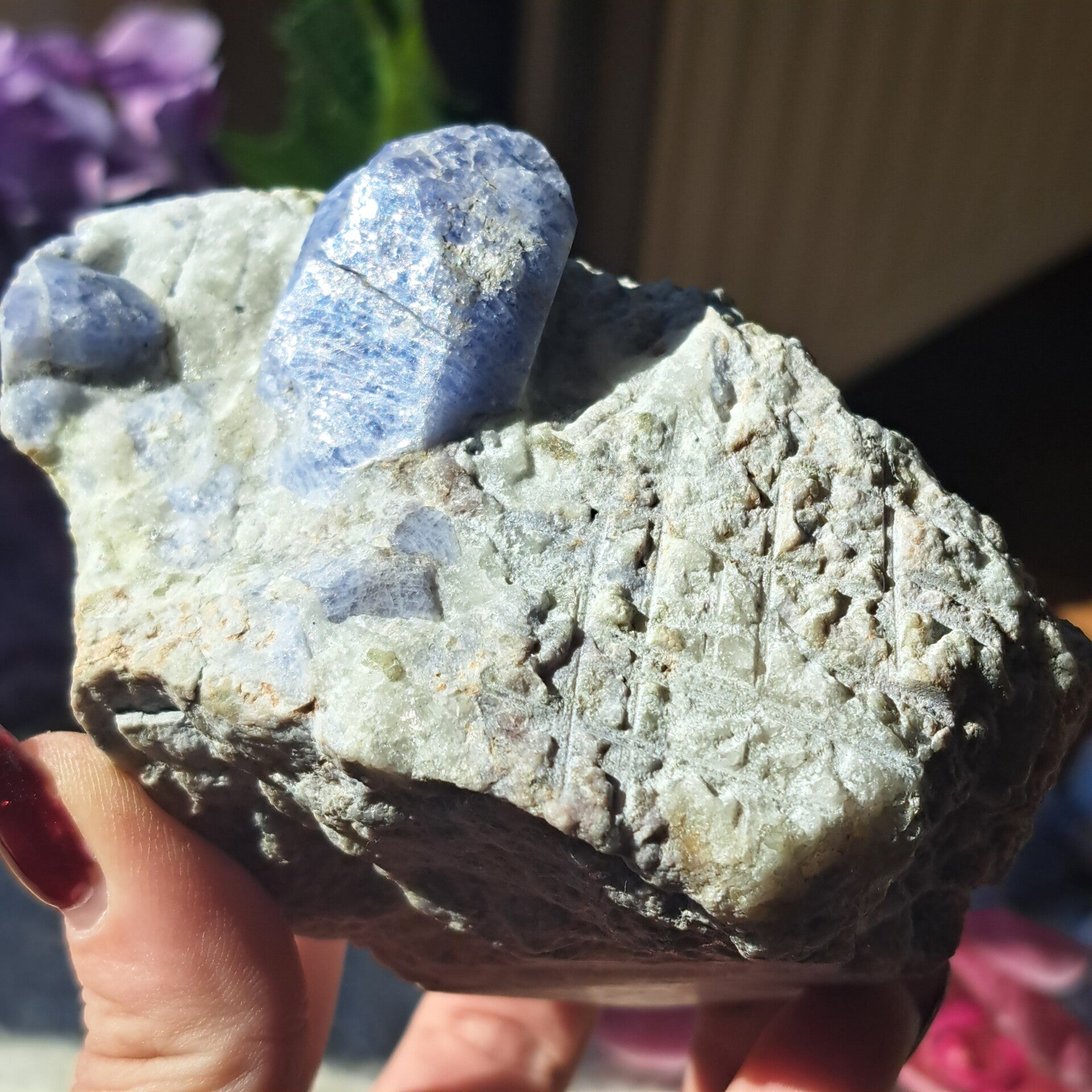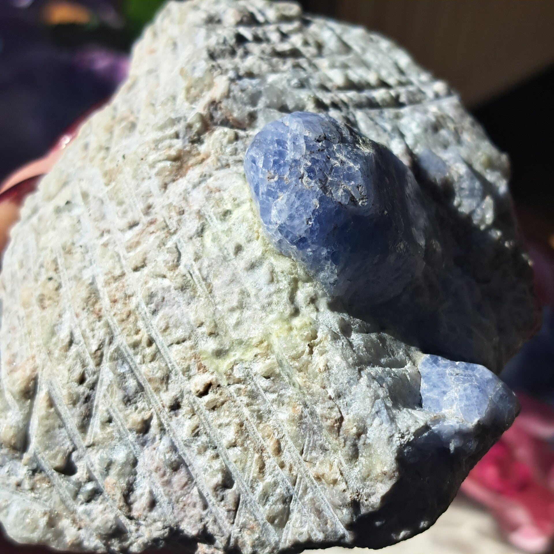 Dit prachtige ruwe stuk met bijzonder tof Hackmaniet Kristal (Niet vaak voorkomend als kristalgroei!) van bijna 4 cm groot in matrix is van een minder vaak voorkomende soort, UV reactief Hackmaniet (Afghanistan), is 724 gram en 11x10cm groot.