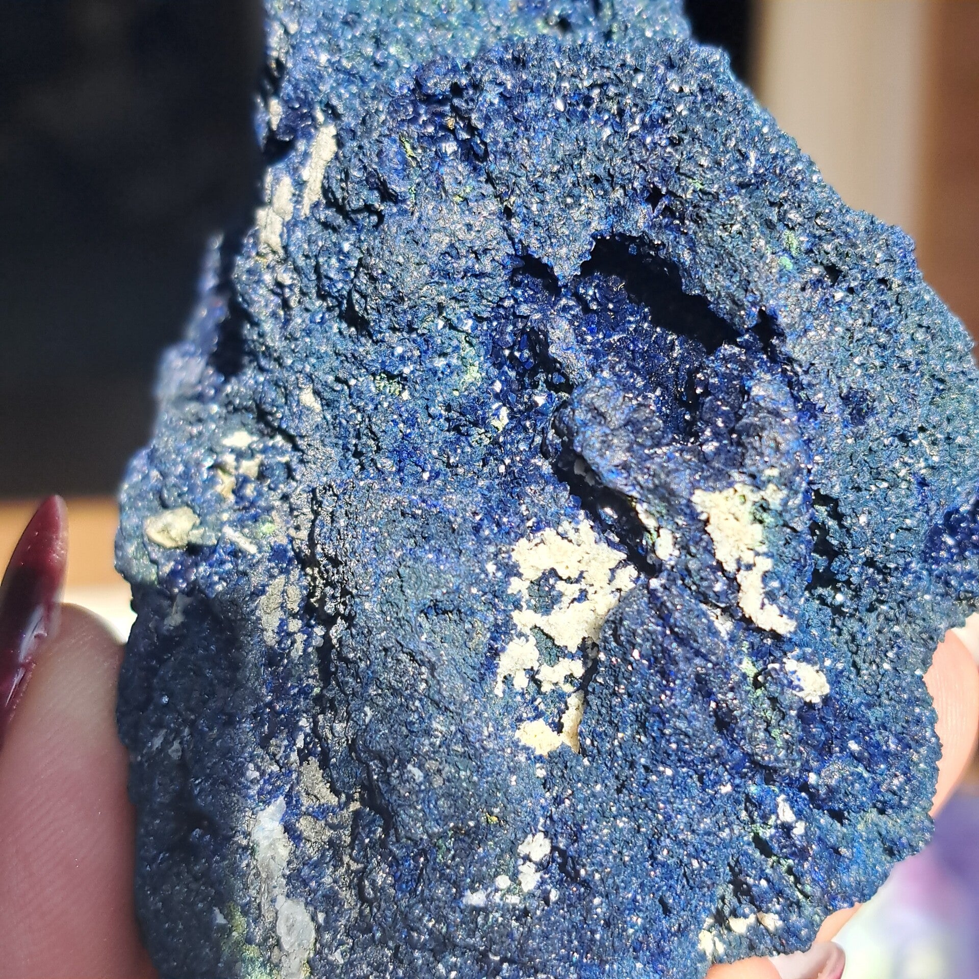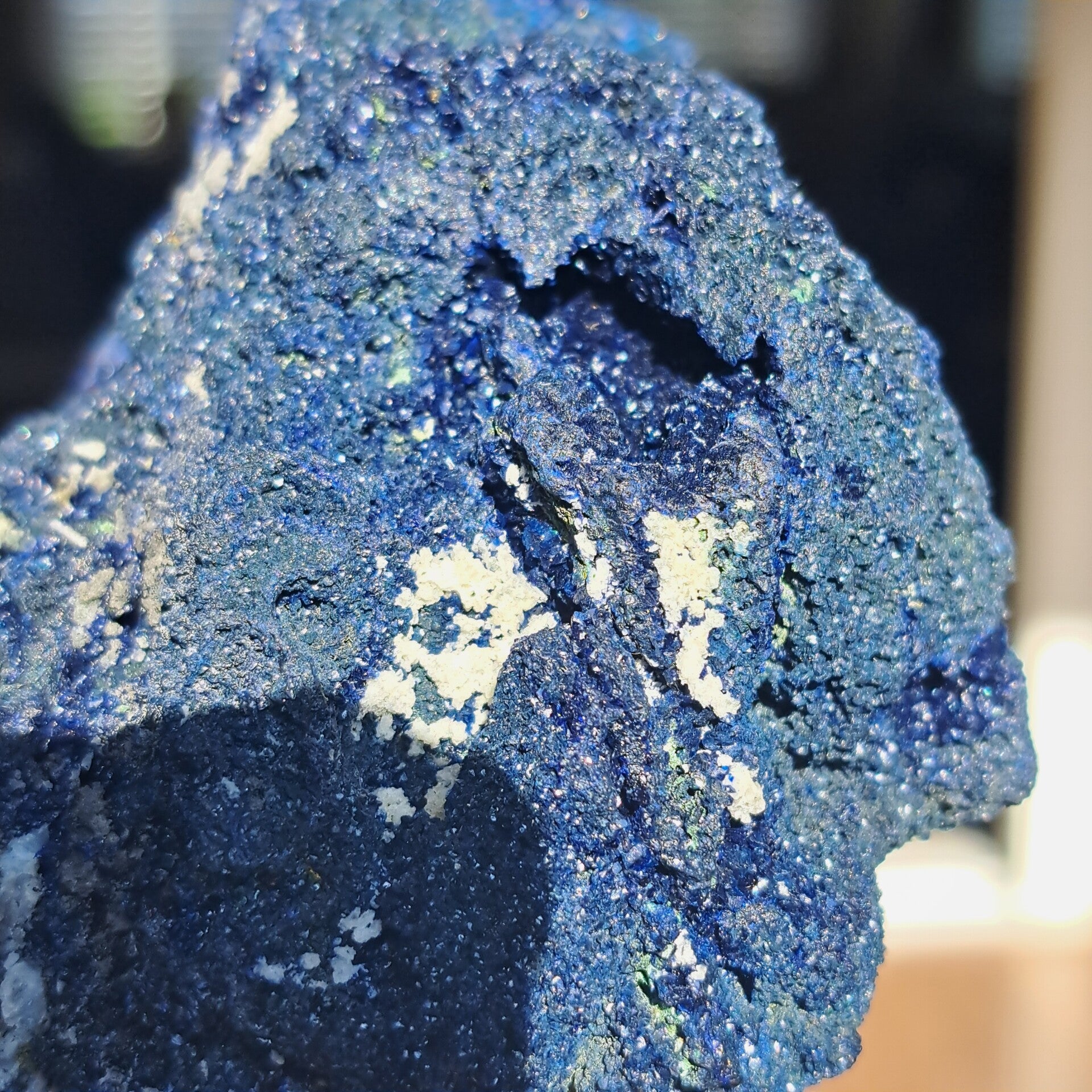 Dit prachtige cluster van Azuriet met kristallen is zo diep en mooi van kleur!