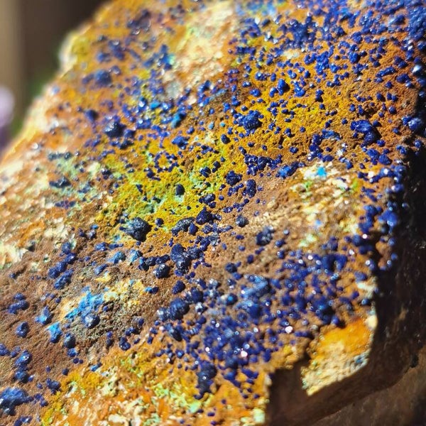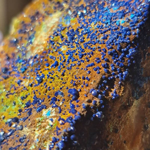 Azuriet is een kopercarbonaat-mineraal en zo genoemd door de diepe Azuurblauwe kleur. Vaak wordt Azuriet gevonden in combinatie met malachiet in koperhoudende aders en mijnen.