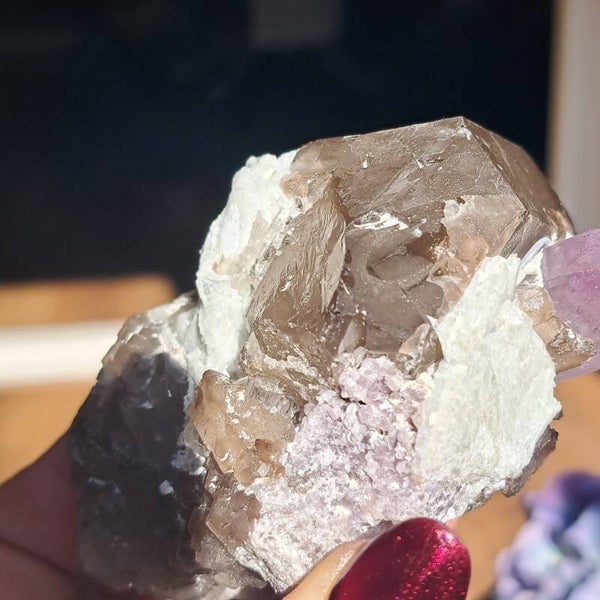 Rookkwarts met Kunziet & Lepidoliet Cluster