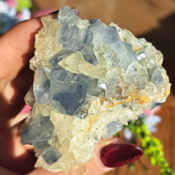 Celestien maakt de geest open voor nieuwe ideeen, brengt structuur in je leven, brengt kalmte en harmonie en werkt ontspannend. (Fijn voor naast je bed ;-)