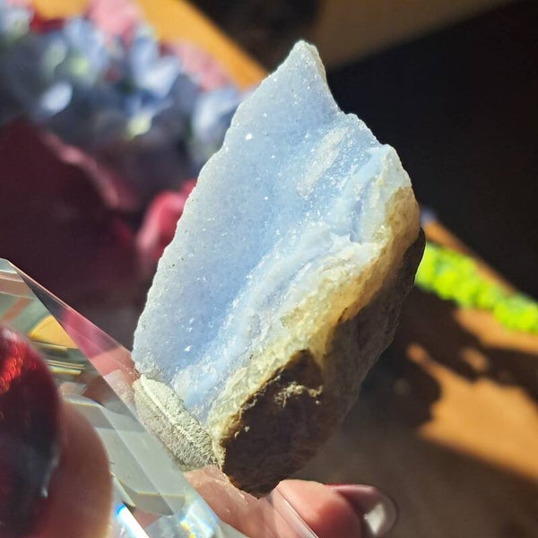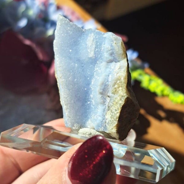 Blauwe Chalcedoon staat bekend om haar beschermende en zachte werking.