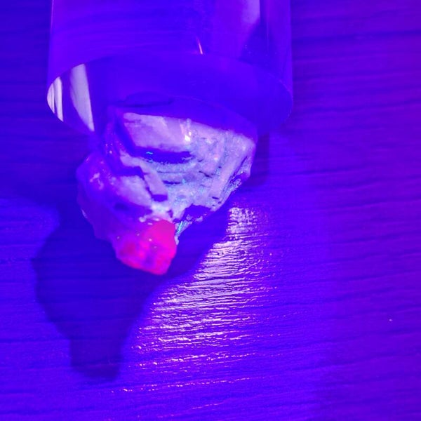 Robijn is een vorm van Corundum, een aluminium oxide met Chroom wat zorgt voor de prachtige dieprode kleur, onder uv heel sterk reactief!!