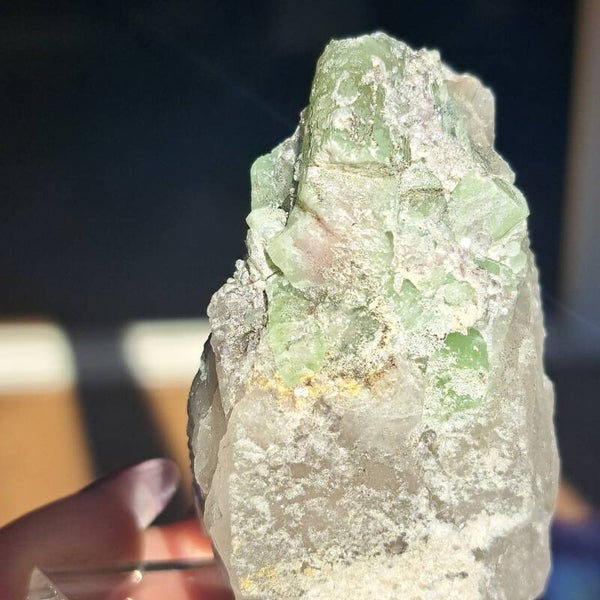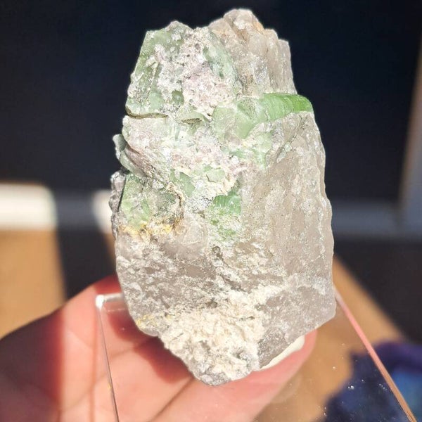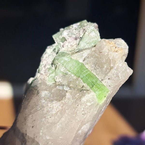 Groene Toermalijn met Rookkwarts op Voet (4)