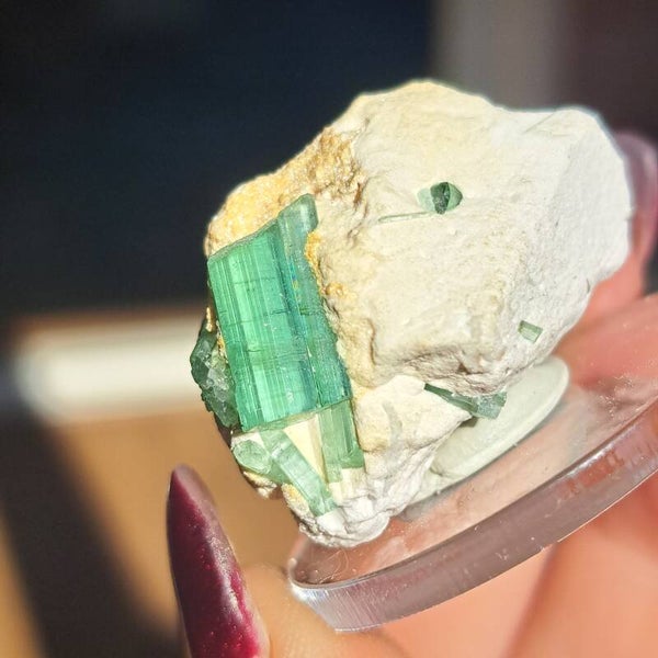 Indicoliet Toermalijn in Kwarts op Voet (6)