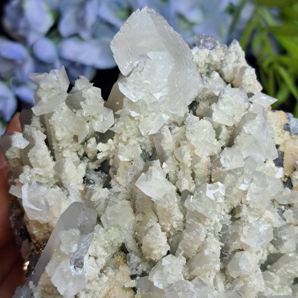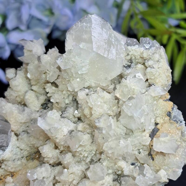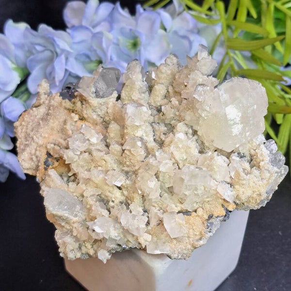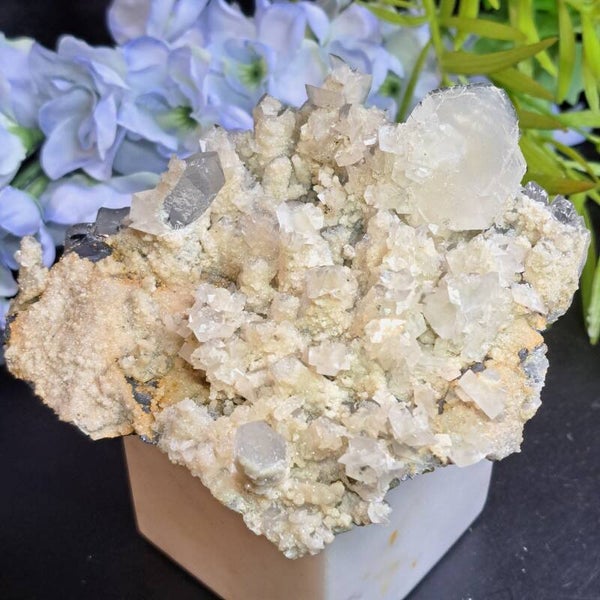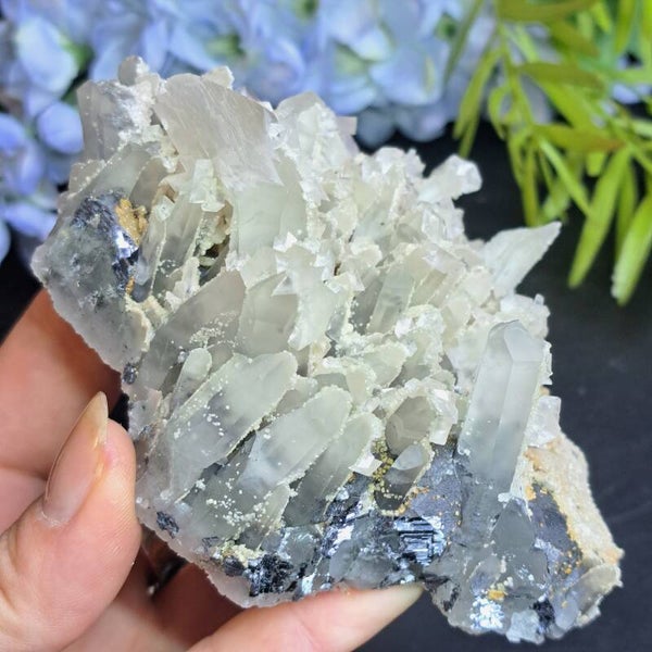Dit prachtige combinatiecluster van (Chloriet) kwarts begroeid met Calciet en insluitingen van galeniet komt uit de Borieva Mijn in Bulgarije.