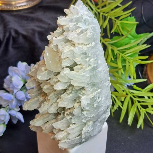Dit prachtige combinatiecluster van (Chloriet) kwarts begroeid met Calciet komt uit de Borieva Mijn in Bulgarije.