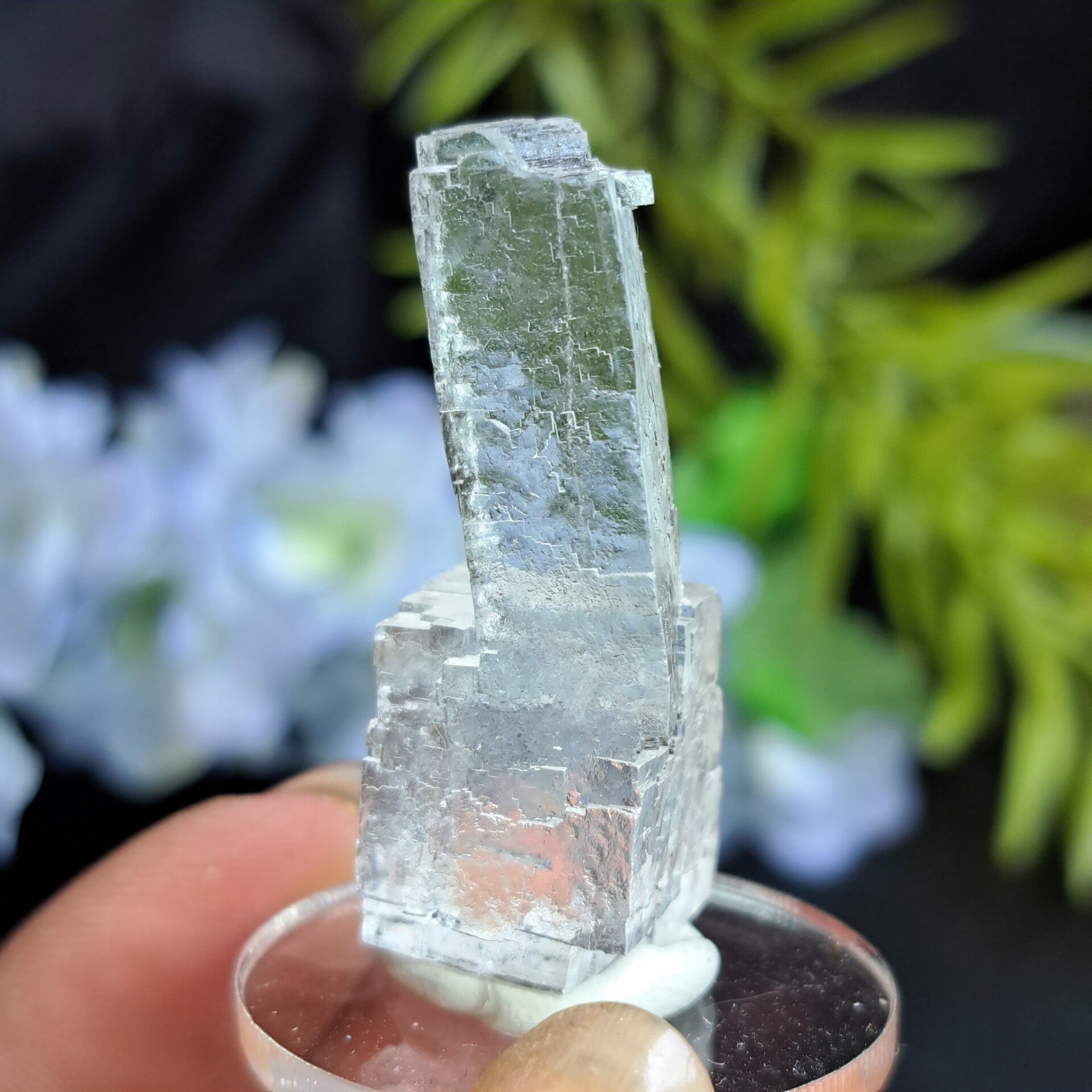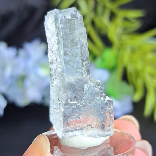 Dit gave stukje Haliet is 14 gram en 4,8 cm groot en staat op een kunststof voetje. Deze Haliet komt uit de Rudna Mijn, Lubin Polen.