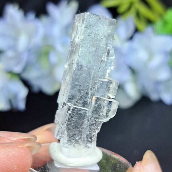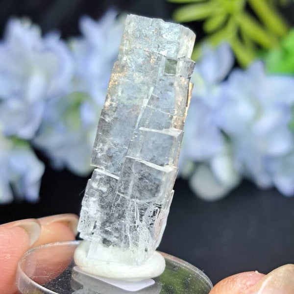Dit gave stukje Haliet is 12 gram en 4,5 cm groot en staat op een kunststof voetje. Deze Haliet komt uit de Rudna Mijn, Lubin Polen.