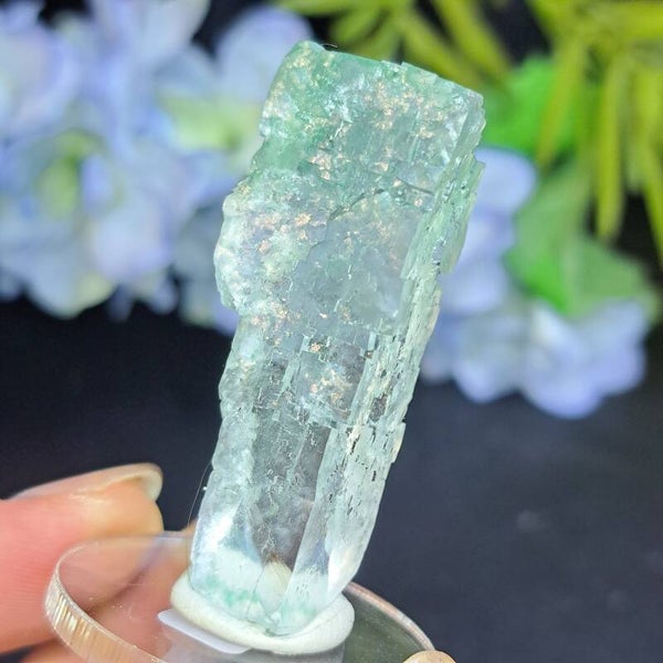 Haliet kan in veel kleuren voorkomen en de kleur is afhankelijk van ingesloten mineralen, in dit geval zorgt Atacamiet voor de licht groene kleur. Haliet is vanuit de edelsteentherapie een fijne ondersteuner op het gebied van KNO problemen.