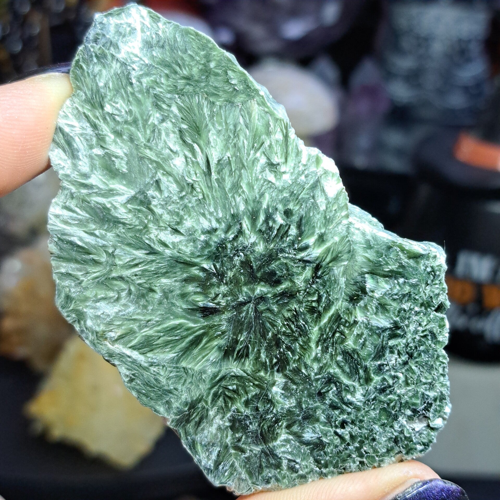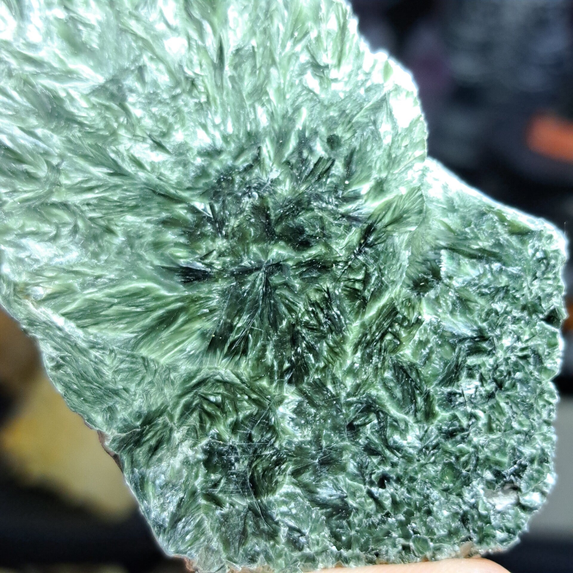 Serafiniet is een variant van Clinochloor en wordt alleen gevonden in Rusland en Siberie. Typerend voor Serafiniet zijn haar glanzende straalvormige vezels.