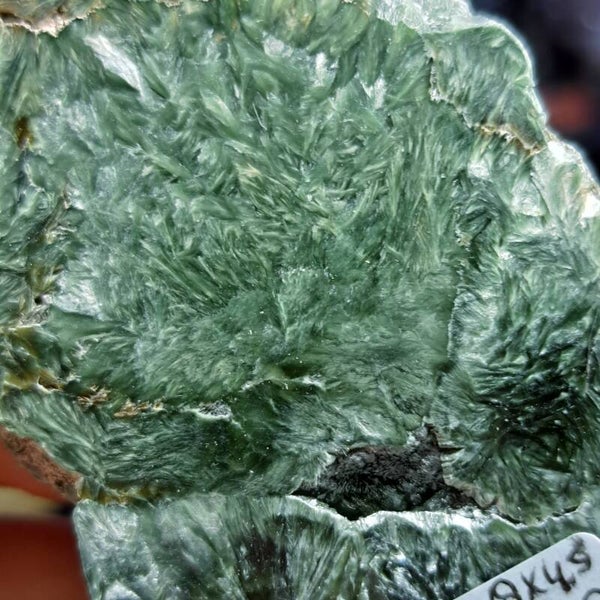Deze serafiniet plak komt uit Rusland (Korshunovskoye iron deposit, Zehelezenogorsk-Ilimsky, Nizhneilimsky District, Irkutsk Oblast). Is 8x4,5 cm groot en weegt 47 gram.