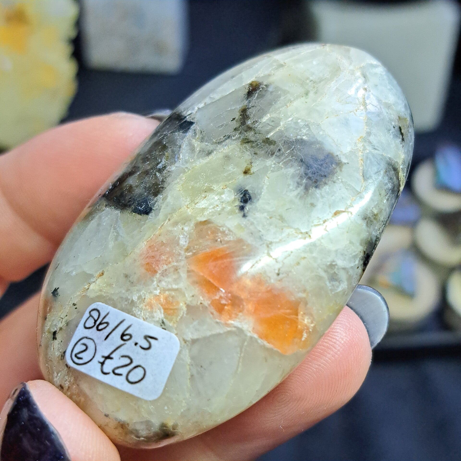 Deze toffe palmsteen is 6,5 cm groot en 86 gram.