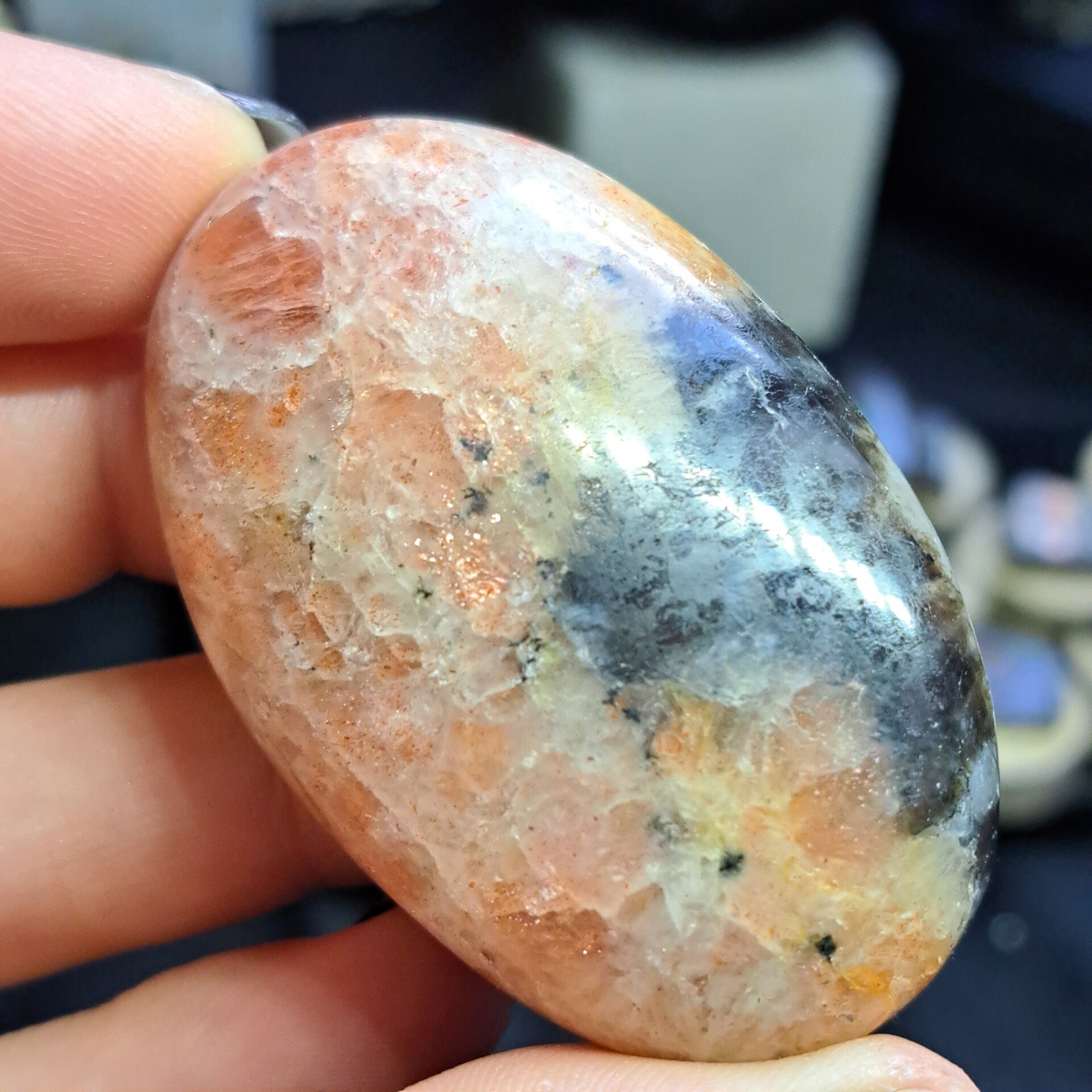 Ioliet-zonnesteen is een natuurlijke mix van ioliet en zonnesteen, of officieel genoemd een samengestelde steen van cordieriet en oligoklaas. Ze vertoont donkerblauwe, paarse, oranje en soms gelige tinten, met of zonder kleurrijke insluitsels.