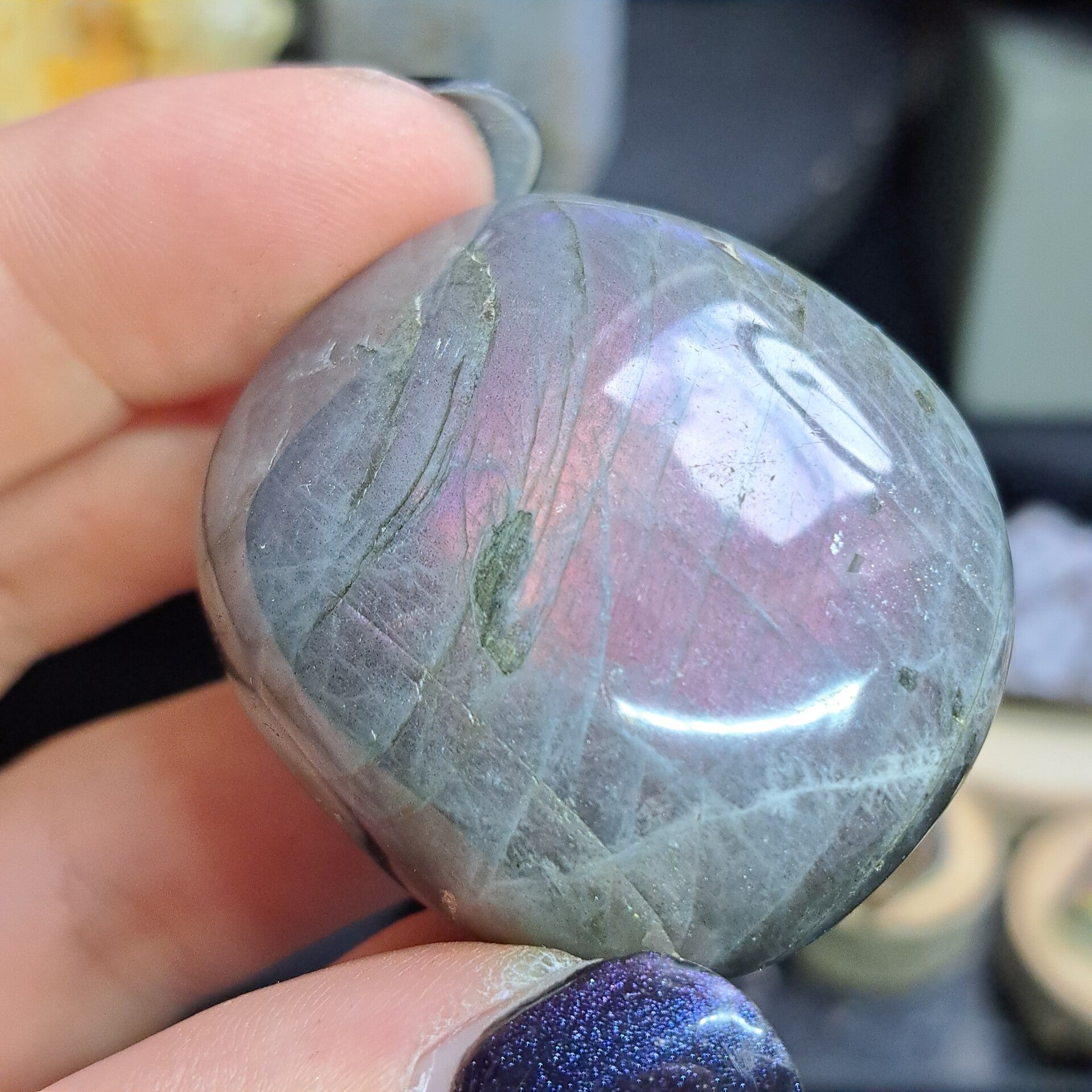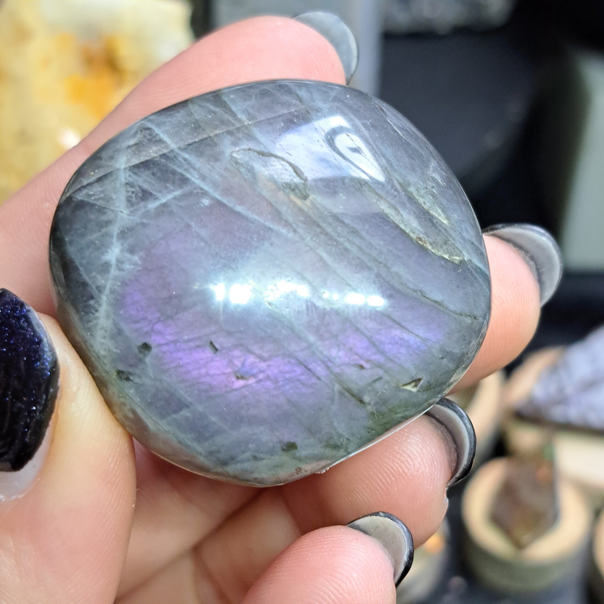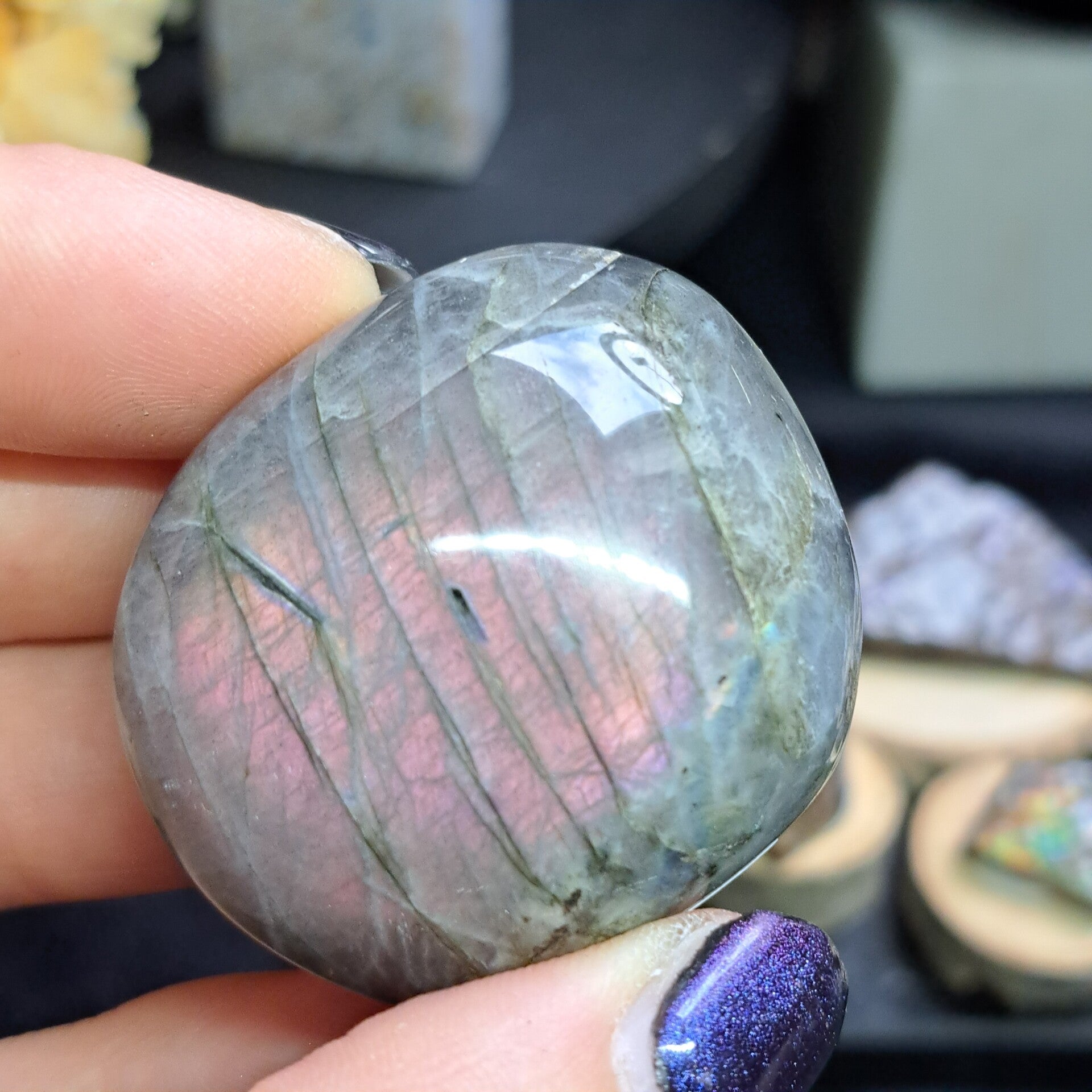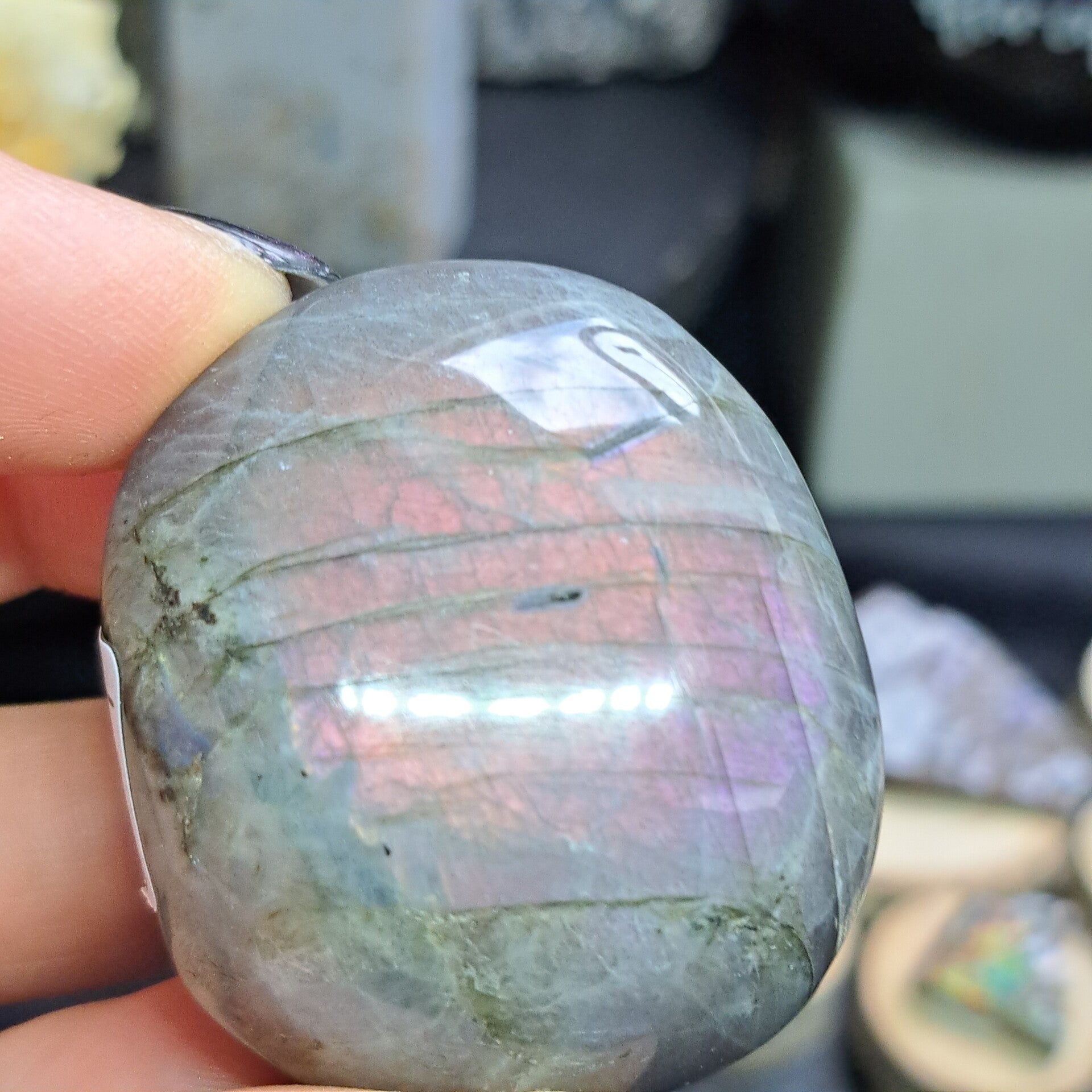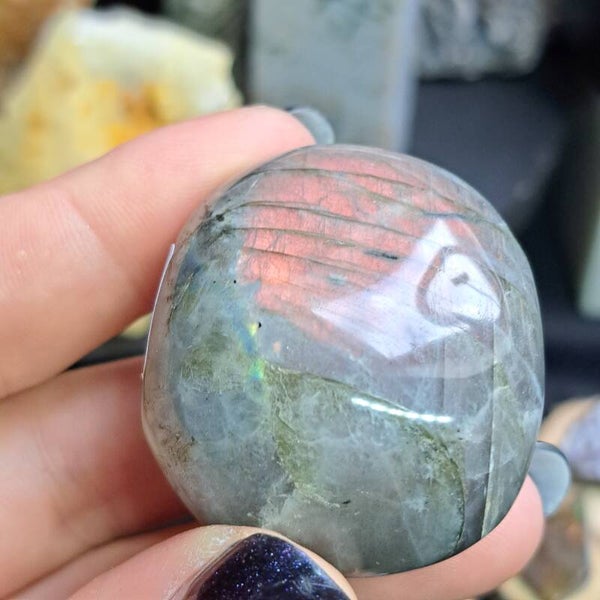 Deze flashy labradoriet jumbo is 63 gram en 5 cm groot.