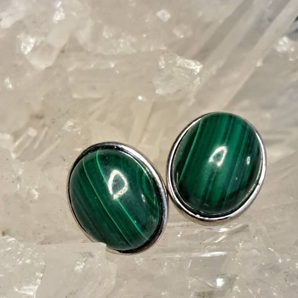 Deze oorbellen in S925 zilver zijn ongeveer 1,2cm groot en hebben een steen van malachiet.