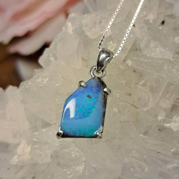 En kijk nou, dat kan toch ook niet anders? Prachtige kleurschakeringen in deze hanger van Australische Opaal.