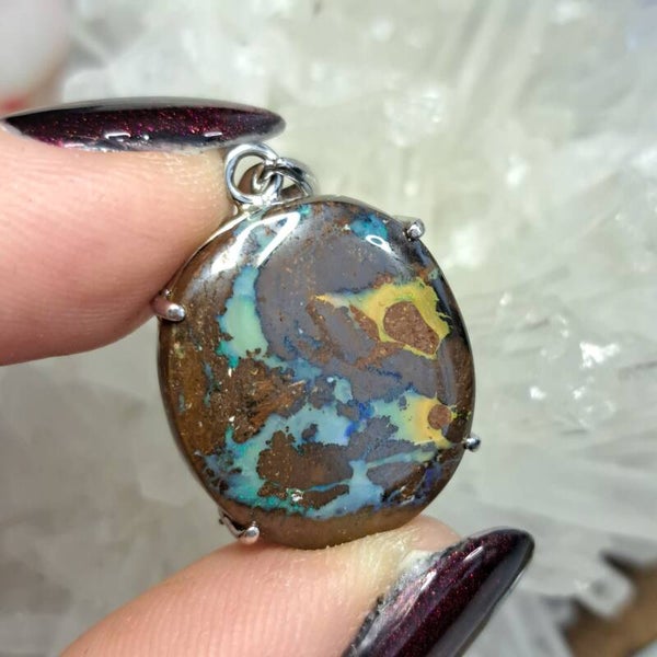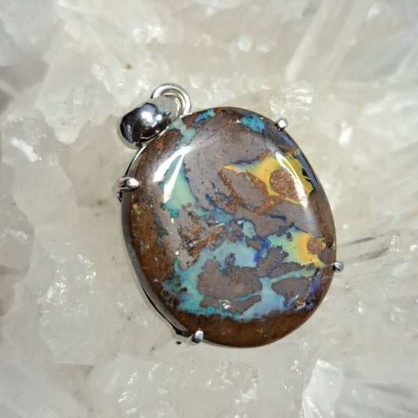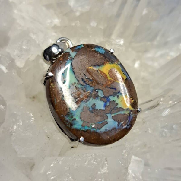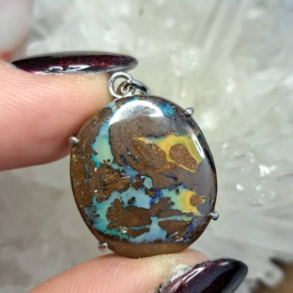 En kijk nou, dat kan toch ook niet anders? Prachtige kleurschakeringen in deze hanger van Australische Boulder Opaal.