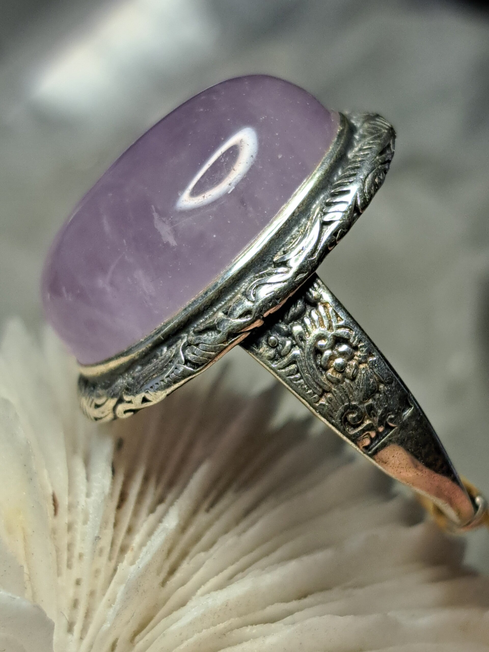 Prachtige ring met grote steen van Amethist. Gezet S925 Zilveren ring welke groter of kleiner versteld kan worden. Draagbaar van maat 16,5 tot maat 18.