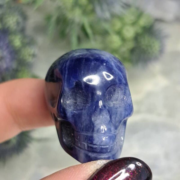 Deze gave mini skull van sodaliet is 3,5 cm groot.