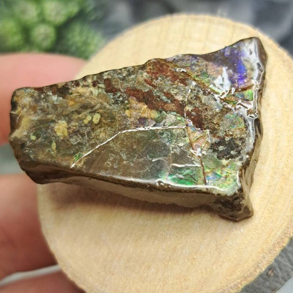 Ammoliet is het versteende materiaal van een gefossiliseerde ammoniet schelp met vaak een parelmoerachtige glans met vooral rood-, groen- en geeltinten. Heel af en toe vindt je ook nog blauw of paars. Vaak wordt Ammoliet beschermd door een dun coatings laagje om het te stabiliseren.