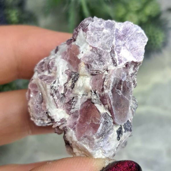 Dit toffe ruwe stukje Paarse mica/ lepidoliet op Albiet is 40 gram en 4cm groot.