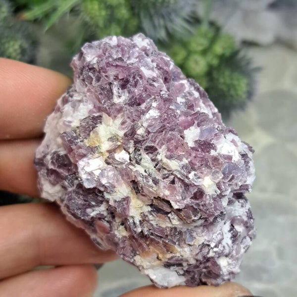 Dit toffe ruwe stukje Paarse mica/ lepidoliet op Albiet is 89 gram en 5,5cm groot.