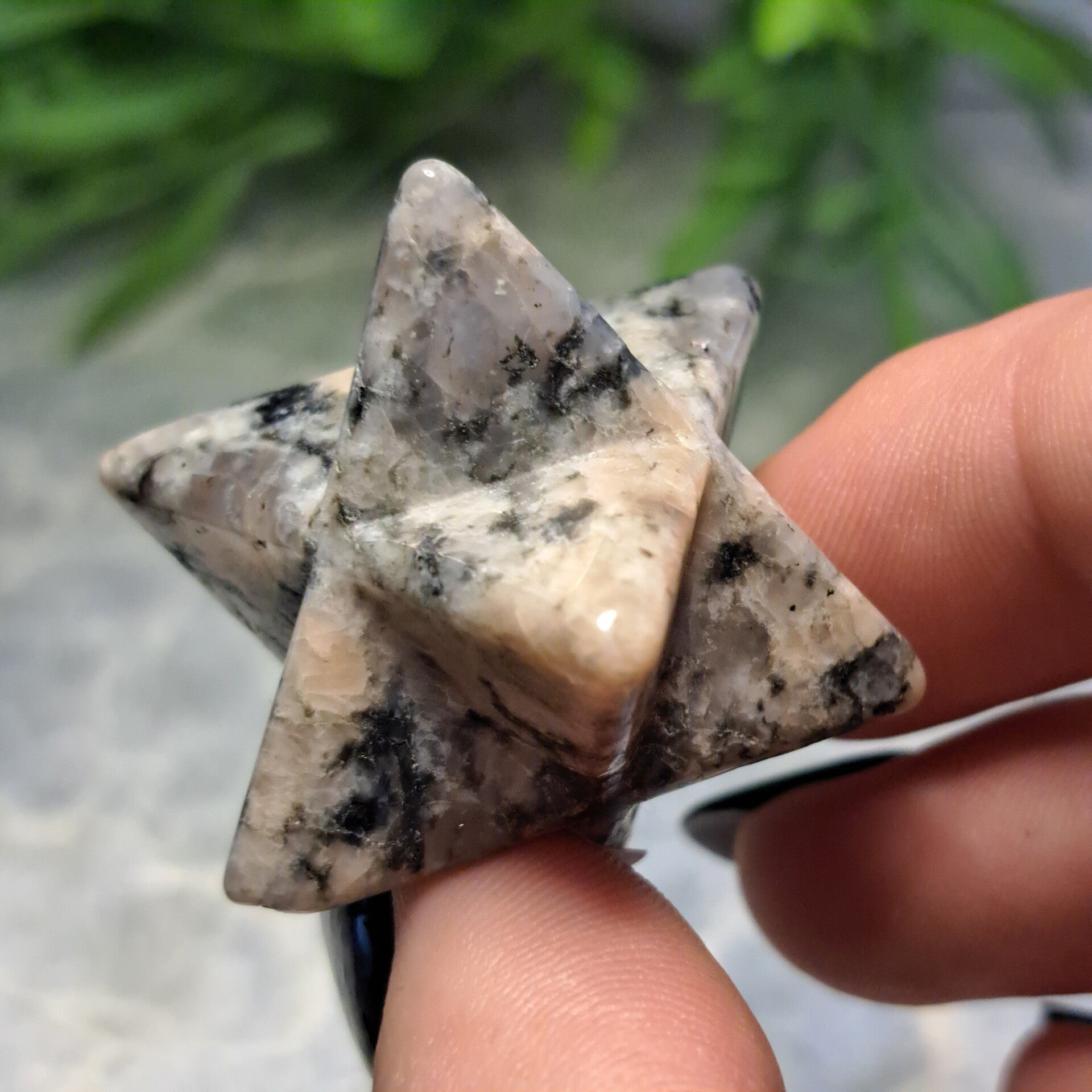 Mooie Merkaba sterren van Jaspis met Chalcedoon mix. Deze schattige krachtpatser is 4cm groot.