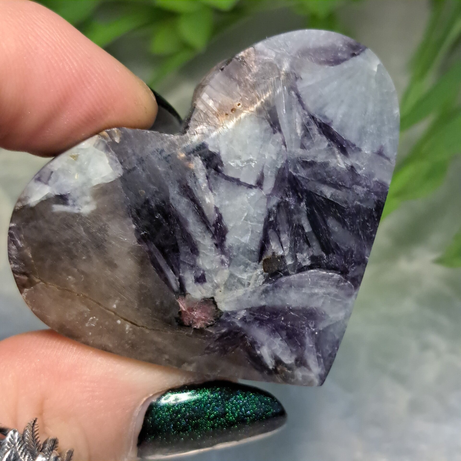 Dit mooie hart met wat roze toermalijn en rookkwarts is 55 gram een 5,2cm groot.
