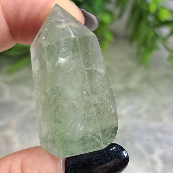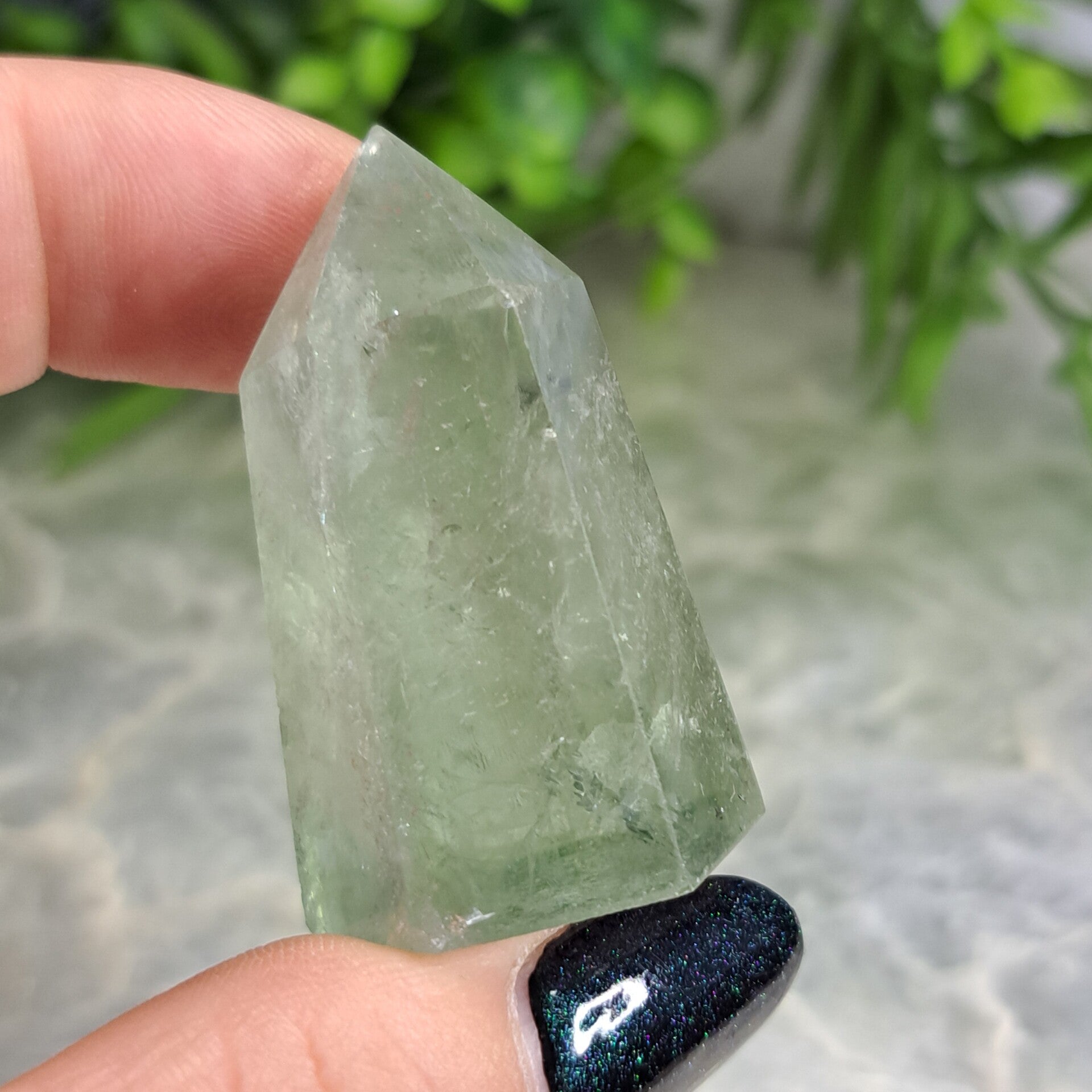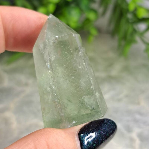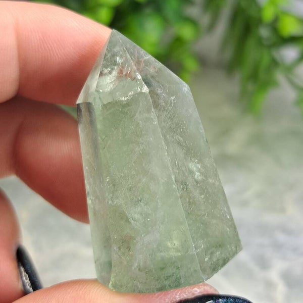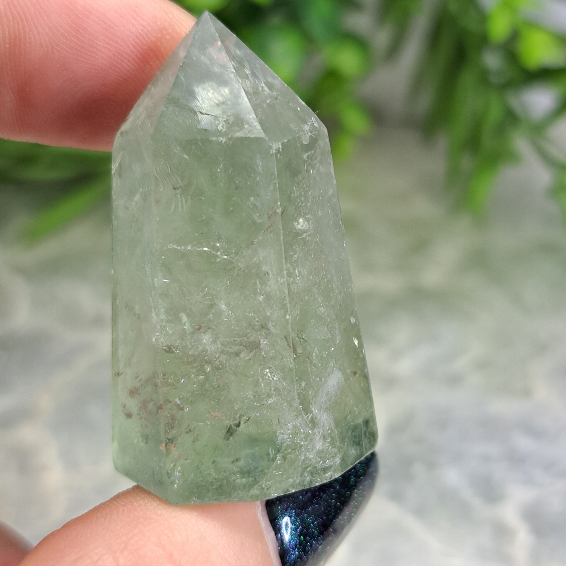 Deze punt van Groene Kwarts verkrijgt haar kleur door Amethist, wat ook een kwartsvorm is, te verhitten tot ongeveer 500 graden waardoor de kleur veranderd van paars naar groen. Ook verkocht onder prasioliet, echter deze vorm is extreem zeldzaam.