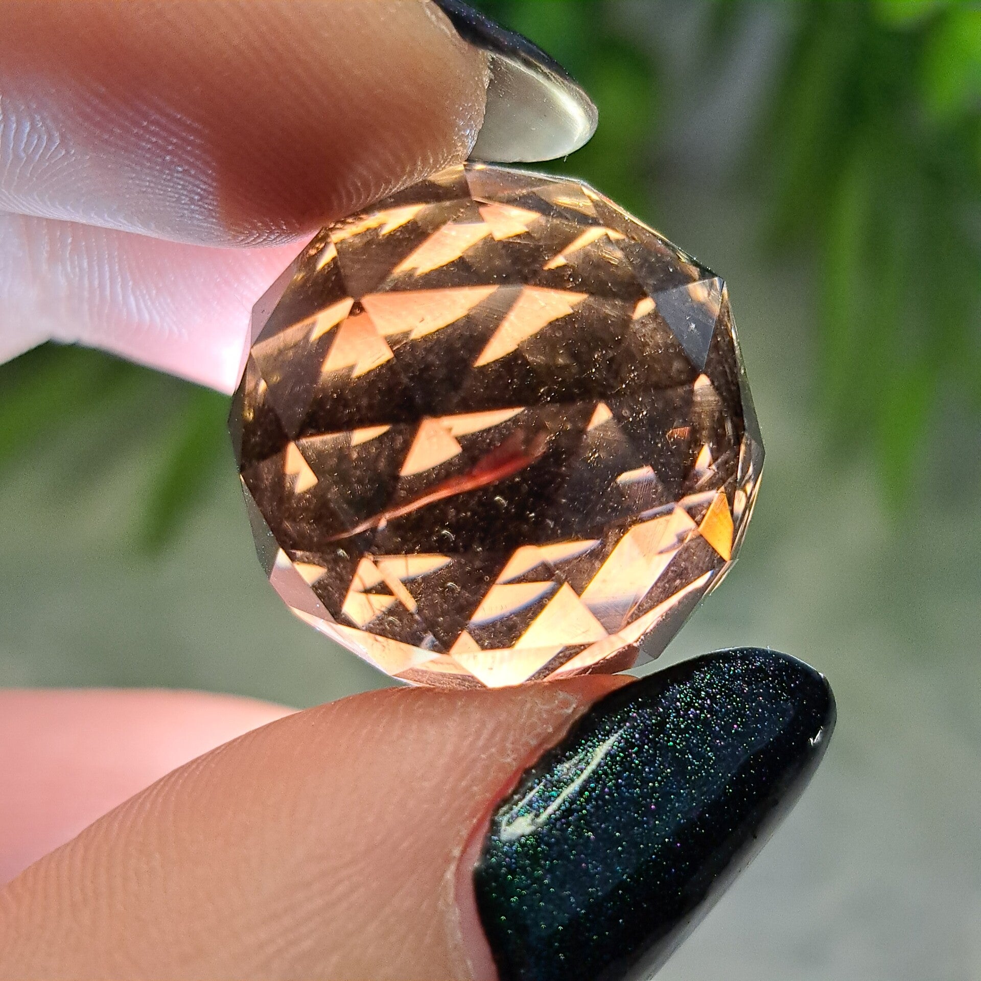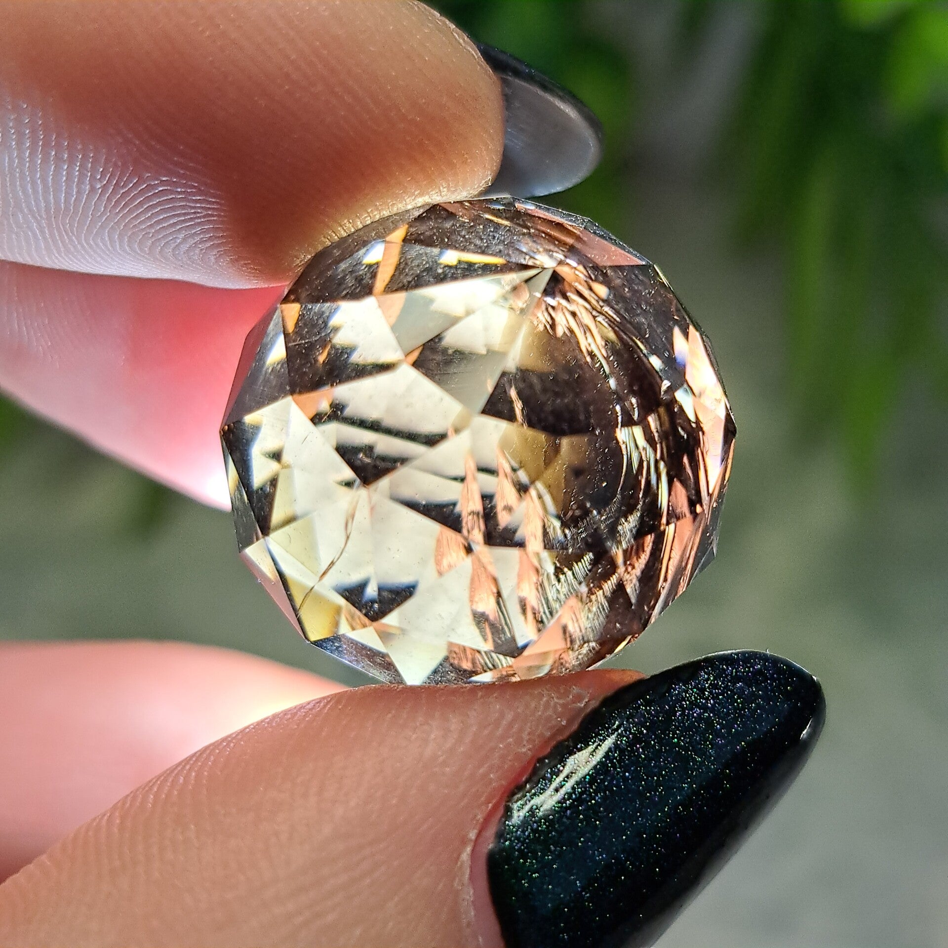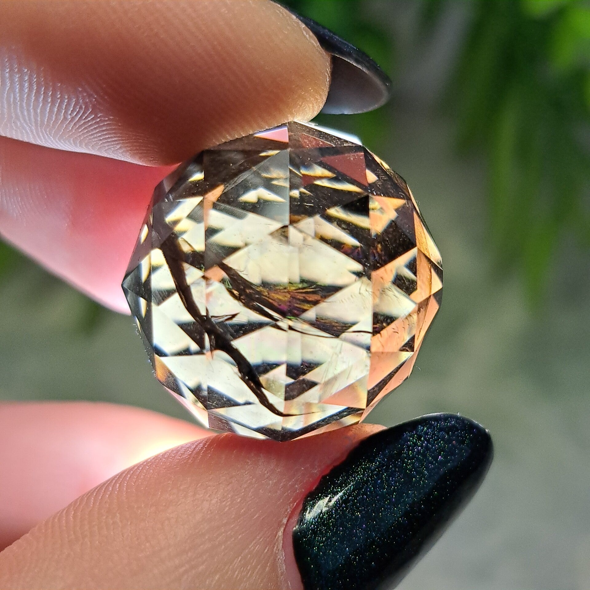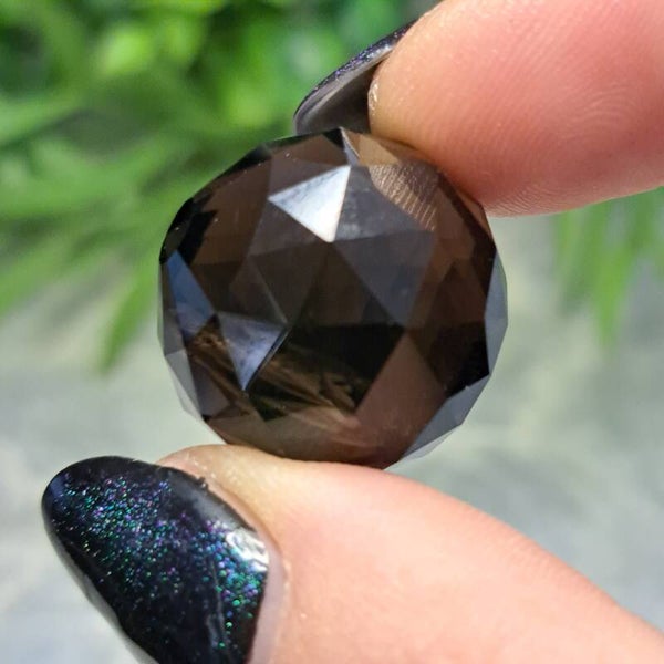 Deze prachtige heldere rookkwarts met regenboogprisma's is een facetgeslepen bolletje en is 2 cm groot, heeft een facetje wat afgevlakt is waardoor het bolletje zonder houder op haar plekje kan blijven.