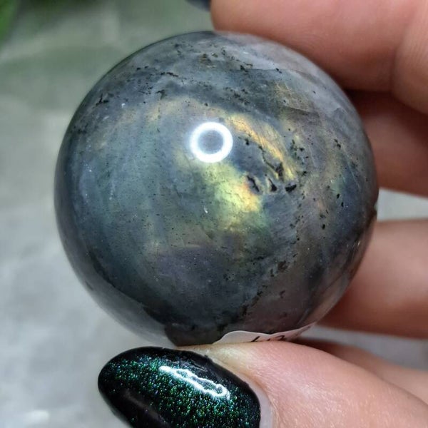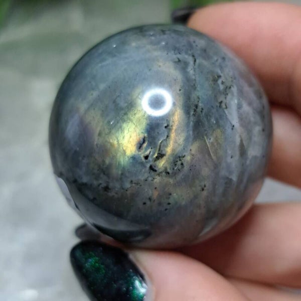 Deze mooie kleine bol met meerkleurige flash is 83 gram en 3.9 cm groot.