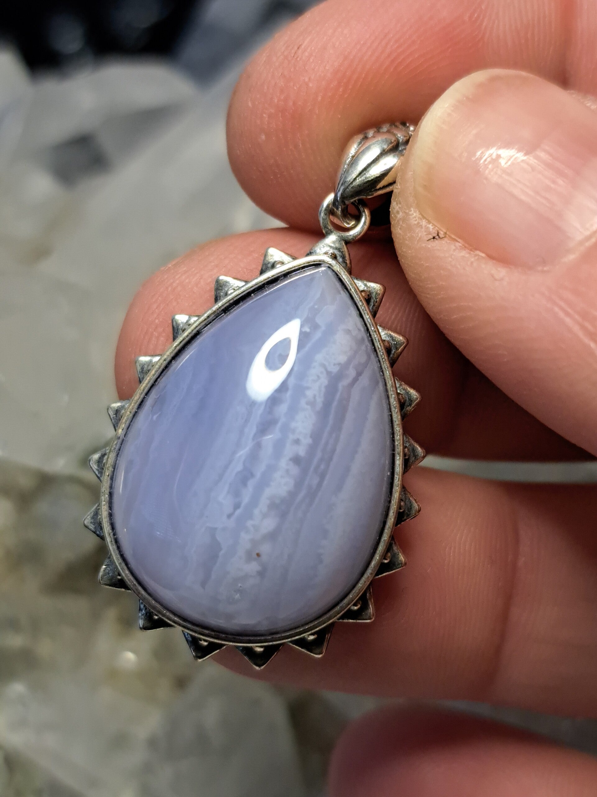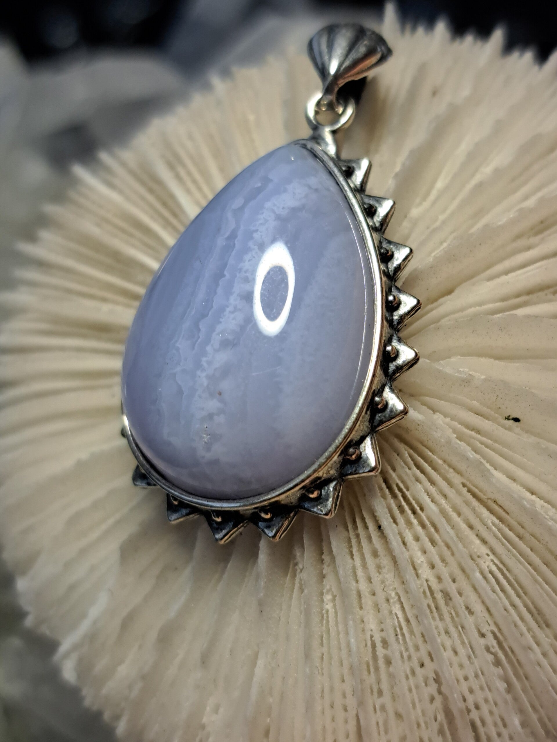 Blue Lace Agaat, eigenlijk beter bekend als Blauwe Chalcedoon staat bekend om haar beschermende en zachte werking.